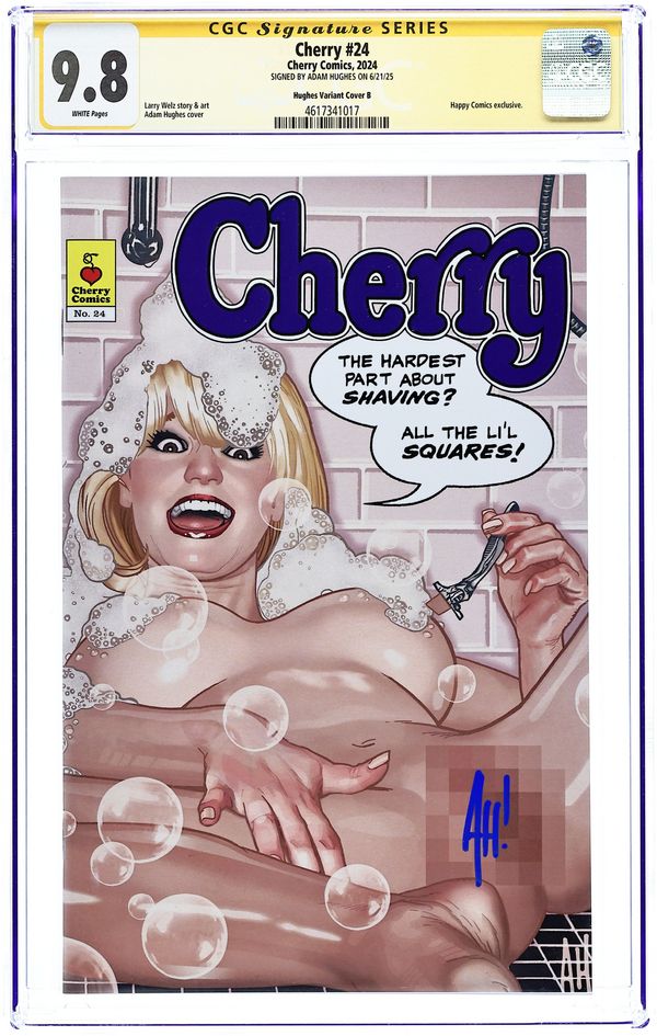 Happy Comics Exclusive "Red" Edition Variant Cover by Adam Hughes - limited to 400 copies. Story and Art by Larry Welz. Cherry #24 is bigger, longer, and harder than ever. It's a 48 page monster that has the next two chapters of the exciting ongoing epic. This issue also features All New Cherry Pin Ups by, Scott Diggs Underwood (Ed Edd n' Eddy, The Addams Family), Joe Pekar (Grimm Fairy Tales), Tuco El Buitre (Mademoiselle De Sade), Robert Ullman (Atom Bomb Bikini), Chance Wolf (Spawn, The Pitt), PHILO (Tales of Shaundra), Aaron Bordner (Alice Sinn, Monster High School) & Steven S. Crompton (Demi The Demoness). With Guest Strips by MastaJWood (Marvel, Dynamite), Shlepzig (Red, File 2231), & Gary Yap (Simpsons, King of the Hill).