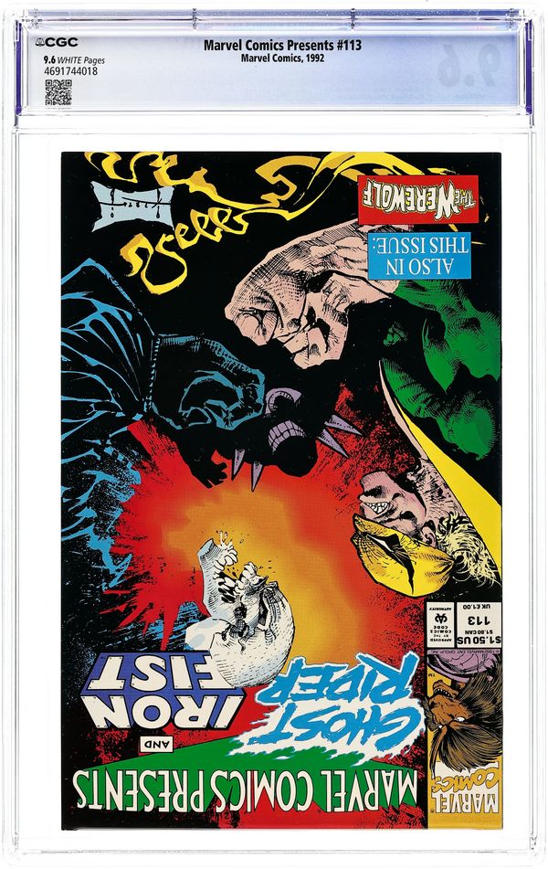 Newsstand Edition. Cover art by George Pratt. Rumble In The Jungle Part 1 starring Wolverine, script by Erik Larsen and Chris Marrinan, pencils by Chris Marrinan, inks by Mike Machlan. Giant Trouble starring Ant-Man, script by Barry Dutter, pencils by Patrick Archibald, inks by Brad Vancata. Fellow Travelers Part 1: Rage of Honor starring Ghost Rider, script by Len Kaminski, pencils by Reggie Jones (Breakdowns), inks by Fred Harper (Finishes). The Highwayman Comes Riding starring Iron Fist, script by Joey Cavalieri, pencils by James Blackburn. 36 pgs. Cover price $1.50.