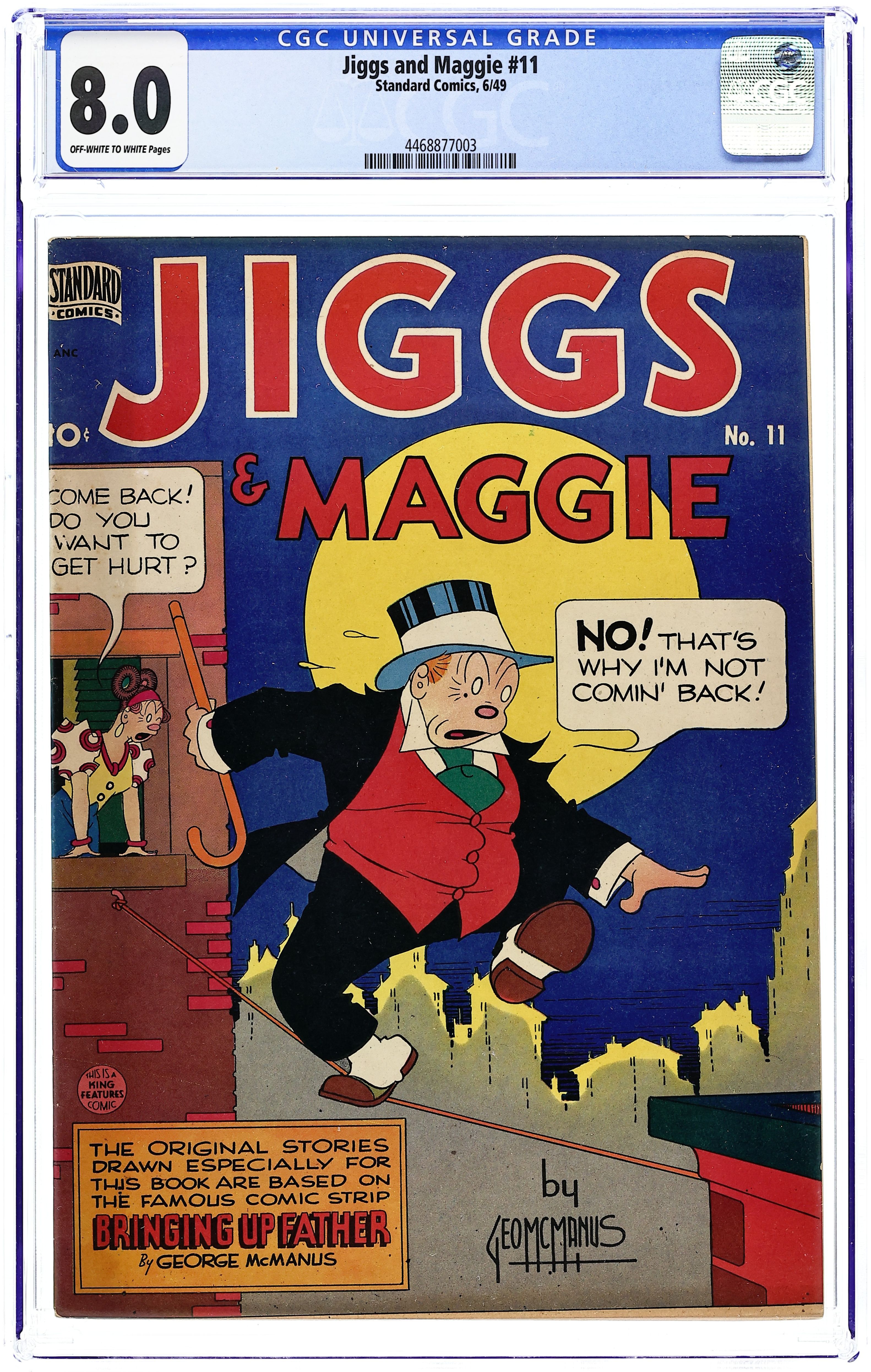 Humor comics based on the popular newspaper strip Bringing Up Father by George McManus. Suddenly wealthy after winning the lottery, Irish-American bricklayer Jiggs tries to continue his drinking and carousing with his old buddies, but his ideas are violently opposed by his wife Maggie, who wants to be part of the upper-class. 32 pages, Full Color. Cover price $0.10.