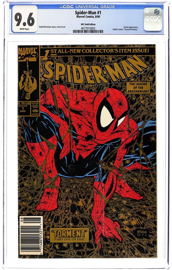 Second printing. Direct Edition. Second Printing with gold cover hologram. The Osborn Legacy" Giant-Sized 30th Anniversary Special Issue. Script by J.M. DeMatteis. Pencils and Inks by Sal Buscema. Harry Osborn has battled psychological problems his entire adult life, but this time he's really gone off the deep end! The Green Goblin kidnaps his wife, son, and brother-in-law (aka the Molten Man) and takes the trio to his fathers old house in the suburbs. For the first time Harry wears the goblin costume in front of his young son. However, Normie doesn't seems to understand the gravity or depravity of the situation and enjoys his fathers ranting and raving while the family sits down for dinner! Fortunately, the goblins diatribe buys the web-slinger time to track down his green and purple foe! And with help from the Molten Man, the Amazing Spider-Man battles the Green Goblin one more time! Second Story: The Night the World Died Script by J.M. DeMatteis. Pencils and Inks by Bob McLeod. Aunt May still has nightmares about the night her husband, Ben Parker, was killed. But her recent encounter with Spider-Man (during the ordeal with the Vulture) has surprisingly brought her comfort. 48 pages Cover price $2.95.