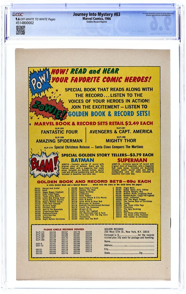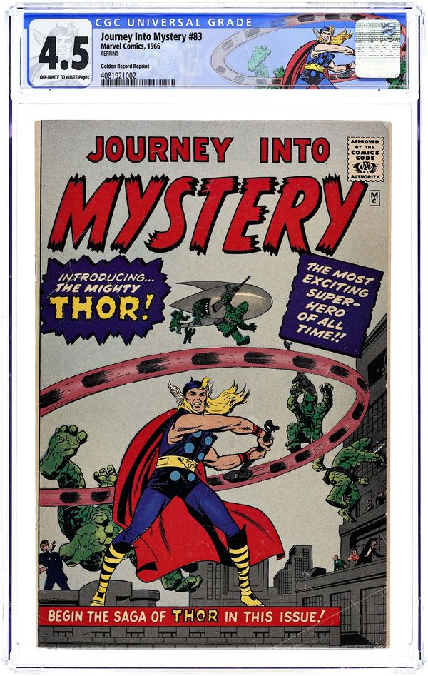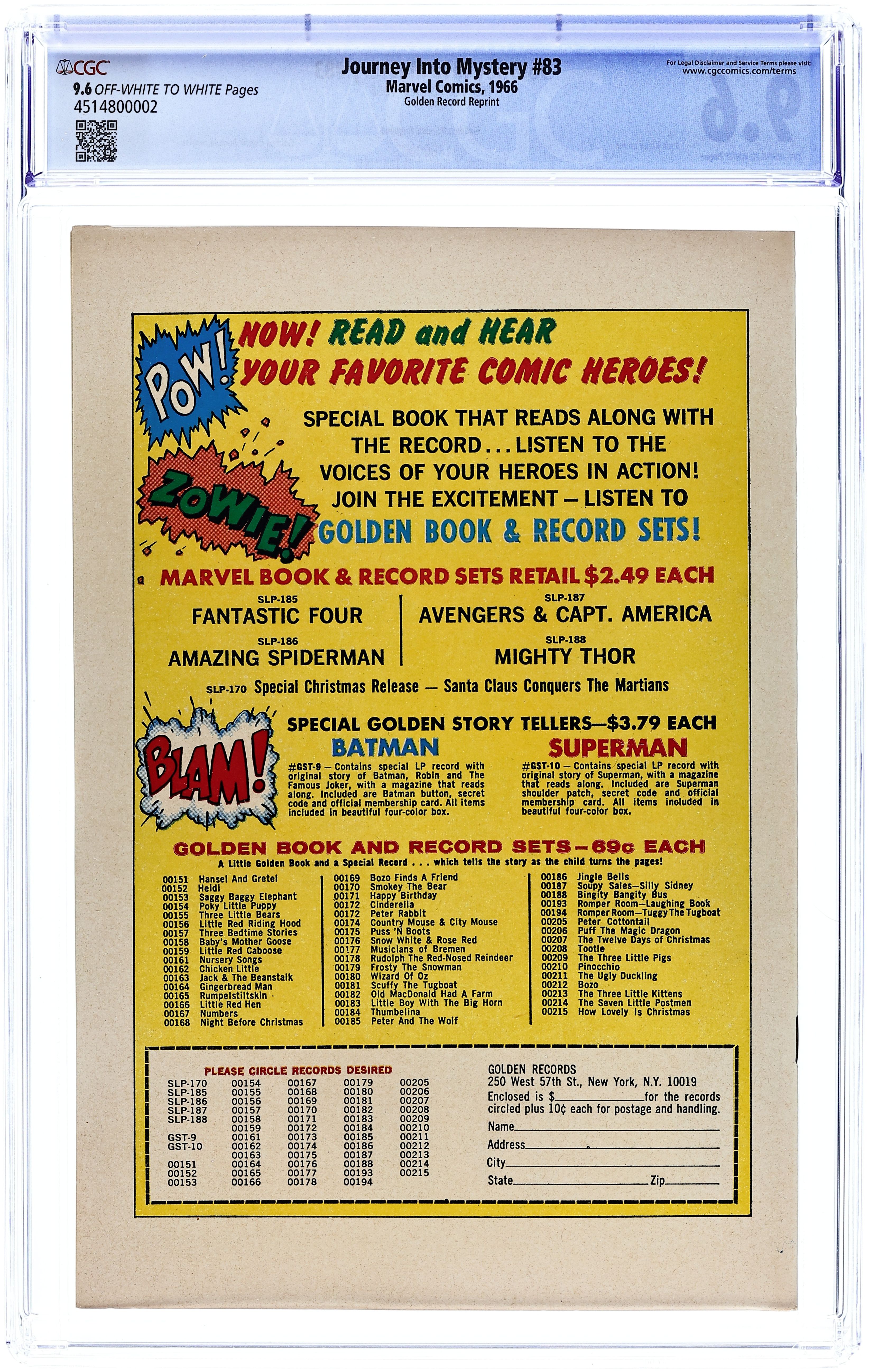 COMIC ONLY, NO RECORD - Reprint from the Golden Record Comic set. Near exact replica of J.I.M (Thor) # 83, but there is no cover price or issue # and Golden Record ad on back cover. 83A does not include the record.