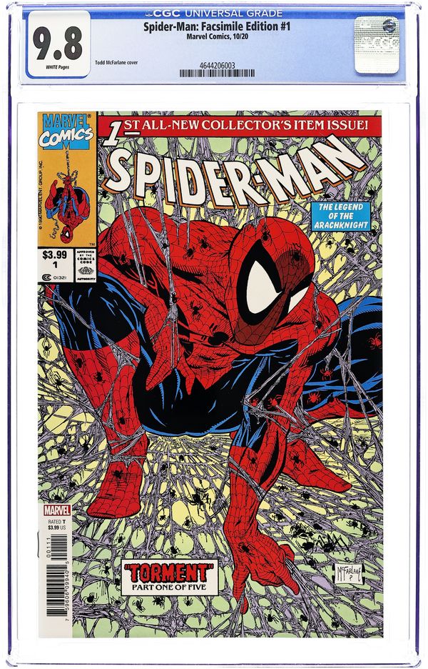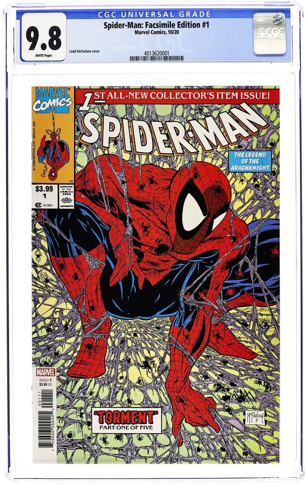 Story, Art and Cover by Todd McFarlane. Celebrating the 30th Anniversary of Spider-Man #1 In 1990, superstar AMAZING SPIDER-MAN artist Todd McFarlane wanted to stretch his creative muscles as a writer - and the result was a brand-new SPIDER-MAN book that needed no superlative! Boasting one of the most famous comic-book covers ever drawn, the record-breaking first issue sold over two million copies - and inside, McFarlane's Spider-Man looked more extraordinary than ever. But why has Spidey's classic foe the Lizard begun a brutal killing spree? As the pounding drums spell doom, the torment is only beginning for Spider-Man and Dr. Curt Connors! It's one of the all-time great Marvel comic books, boldly re-presented in its original form, ads and all! Reprinting SPIDER-MAN (1990) #1. 32 pages, full color. Rated T Cover price $3.99.