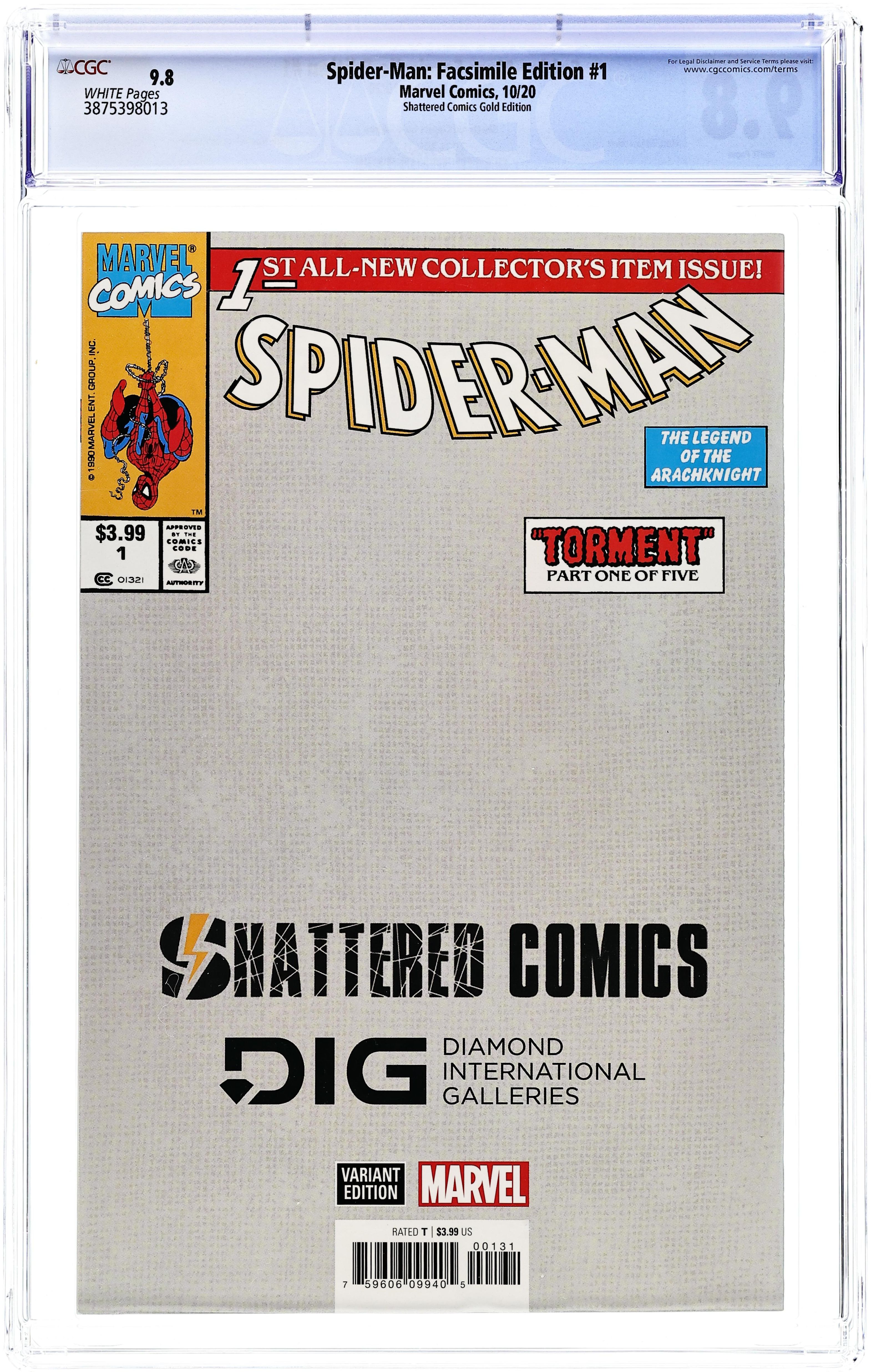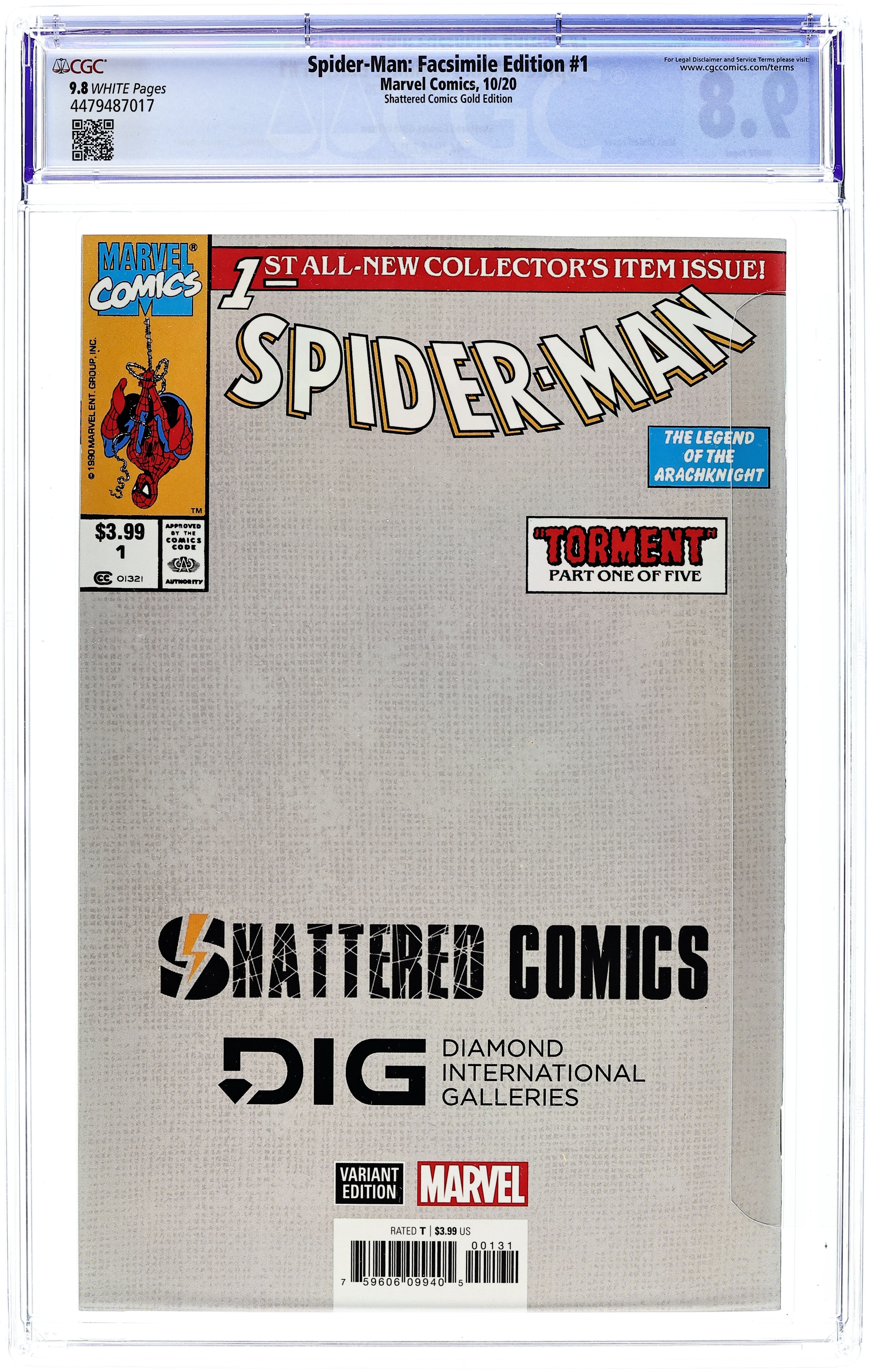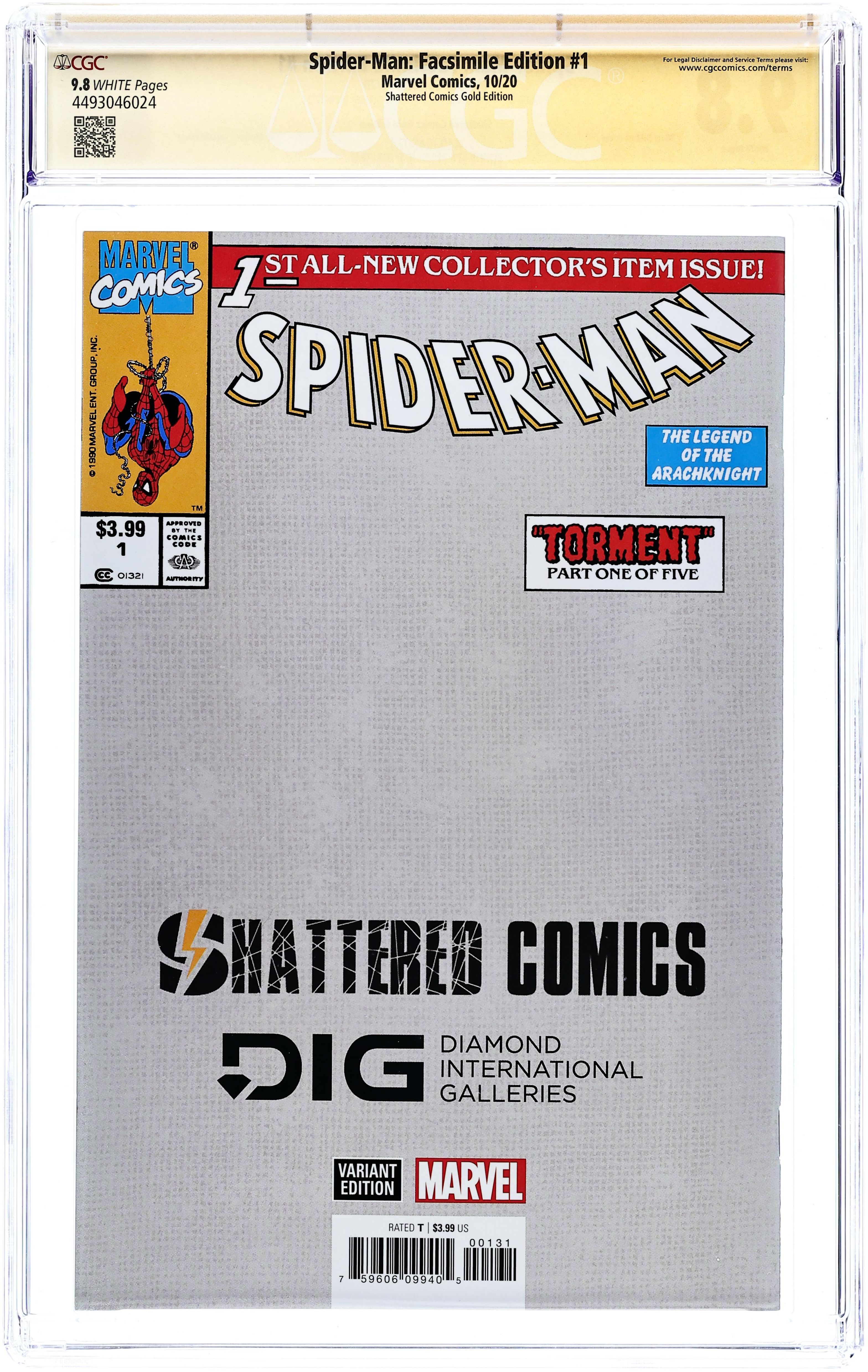 Shattered Comics exclusive 30th anniversary variant cover by Matt Dimasi. Story and Art by Todd McFarlane. Celebrating the 30th Anniversary of Spider-Man #1 In 1990, superstar AMAZING SPIDER-MAN artist Todd McFarlane wanted to stretch his creative muscles as a writer - and the result was a brand-new SPIDER-MAN book that needed no superlative! Boasting one of the most famous comic-book covers ever drawn, the record-breaking first issue sold over two million copies - and inside, McFarlane's Spider-Man looked more extraordinary than ever. But why has Spidey's classic foe the Lizard begun a brutal killing spree? As the pounding drums spell doom, the torment is only beginning for Spider-Man and Dr. Curt Connors! It's one of the all-time great Marvel comic books, boldly re-presented in its original form, ads and all! Reprinting SPIDER-MAN (1990) #1. 32 pages, full color. Rated T Cover price $3.99.