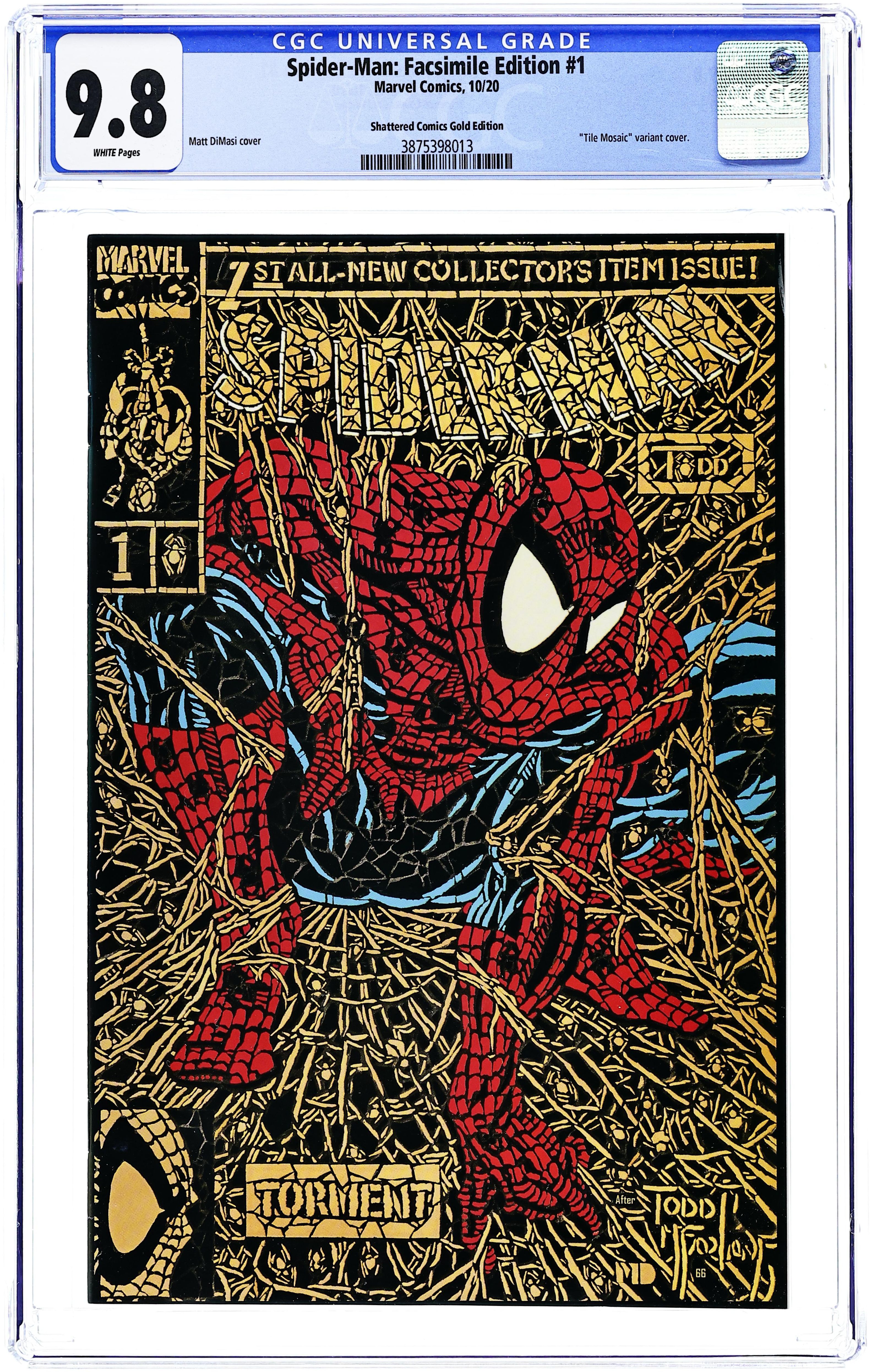 Shattered Comics exclusive gold variant cover by Matt Dimasi. Story and Art by Todd McFarlane. Celebrating the 30th Anniversary of Spider-Man #1 In 1990, superstar AMAZING SPIDER-MAN artist Todd McFarlane wanted to stretch his creative muscles as a writer - and the result was a brand-new SPIDER-MAN book that needed no superlative! Boasting one of the most famous comic-book covers ever drawn, the record-breaking first issue sold over two million copies - and inside, McFarlane's Spider-Man looked more extraordinary than ever. But why has Spidey's classic foe the Lizard begun a brutal killing spree? As the pounding drums spell doom, the torment is only beginning for Spider-Man and Dr. Curt Connors! It's one of the all-time great Marvel comic books, boldly re-presented in its original form, ads and all! Reprinting SPIDER-MAN (1990) #1. 32 pages, full color. Rated T Cover price $3.99.