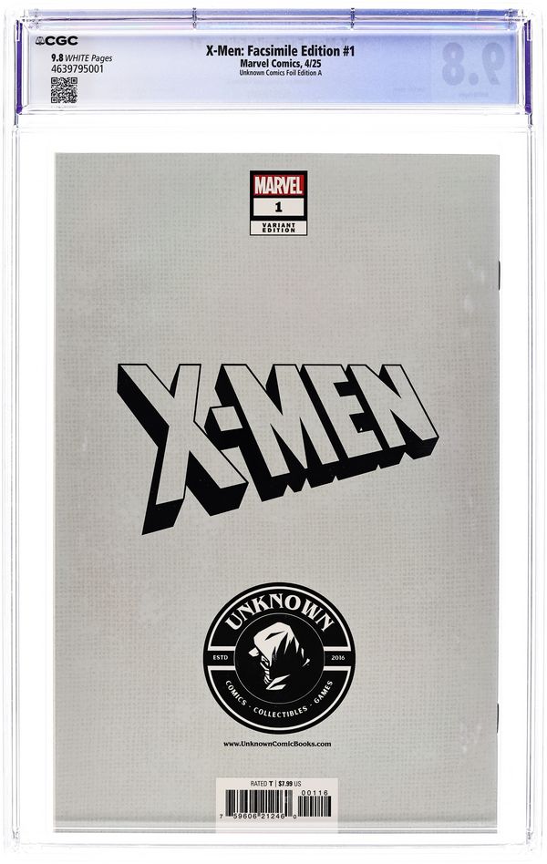 Unknown Comics Exclusive Foil "Cyclops and Wolverine" Edition Variant Cover by Jim Lee. Written by Chris Claremont; Jim Lee. Art by Jim Lee. Another chance to buy the best-selling comic book of all time — one that ushered in a new era of X-Men greatness! In 1991, history was made when superstar creators Chris Claremont and Jim Lee launched a second ongoing title for Marvels premier mutant super-group — and the inaugural issue featured an all-star lineup, separated into Cyclops Blue team and Storms Gold team, for an action-packed showdown against their archenemy, Magneto, and his fanatical Acolytes! Featuring fan-favorite characters looking better than ever in bold new costumes that helped define a decade, its no wonder the adjectiveless X-MEN #1 sold an incredible eight million copies! Its one of the all-time great Marvel comic books, boldly re-presented in its original deluxe-edition form, packed with pinups and an iconic wraparound cover! Reprinting X-MEN (1991) #1. 48 pages, full color. Rated T Cover price $7.99.