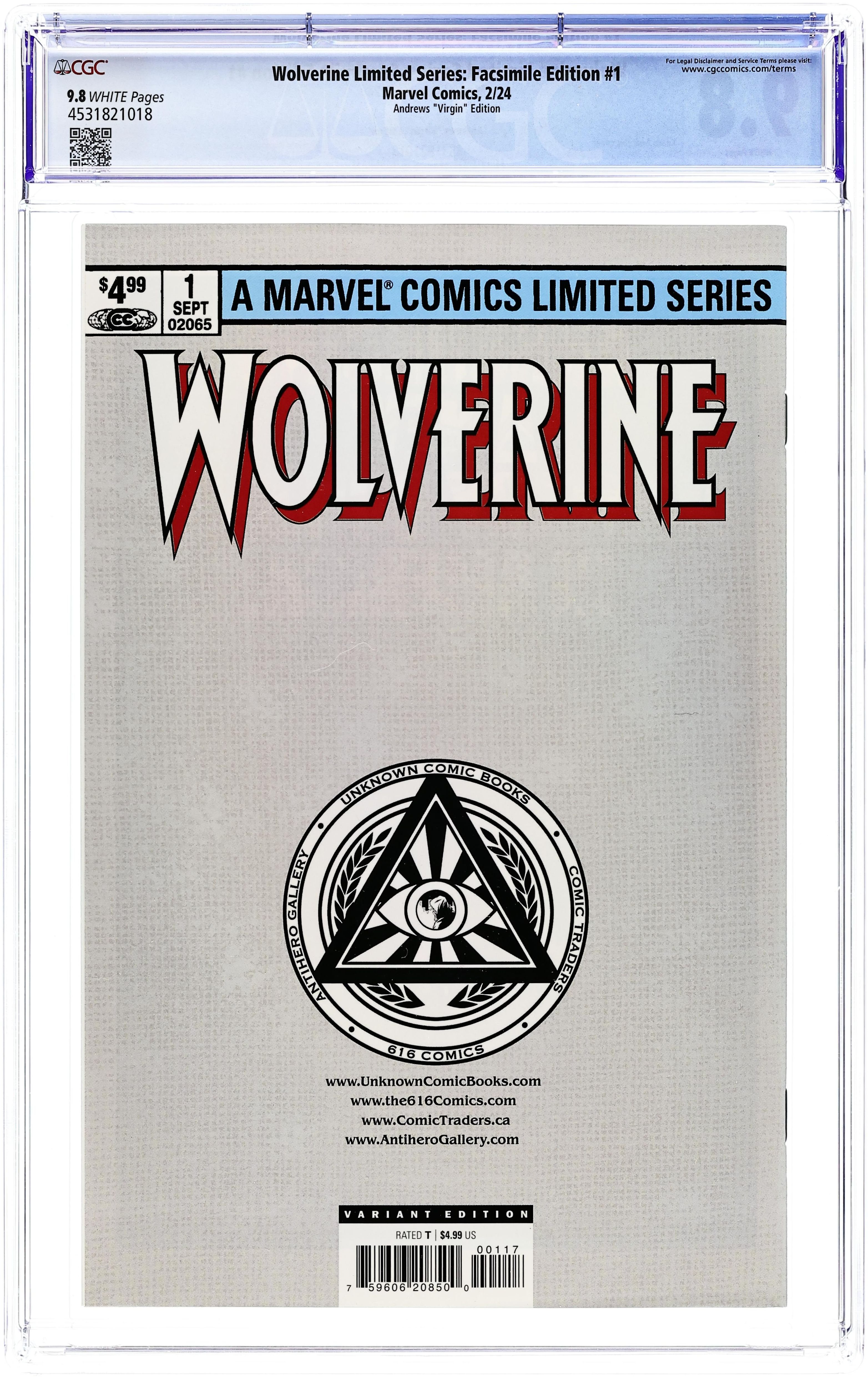 Comics Illuminati (Unknown Comics, Comic Traders, Anti-Hero Gallery, and The 616 Comics) Exclusive Virgin Cover by Kaare Andrews. Written by Chris Claremont. Art by Frank Miller. He's Wolverine. He's the best there is at what he does. And what he does best isn't very nice. Revisit the classic, character-defining story that burned that phrase on the collective consciousness of comic book readers! A pair of industry legends - Chris Claremont and Frank Miller - show how the breakout star of the X-Men could also be a solo series icon! Claremont and Miller take Logan away from his teammates - all the way to Japan, where Mariko, the woman he loves, has married another out of duty! As Wolverine hunts for answers, he is drawn into brutal combat with Mariko's father - and enters a shadowy world of samurai and ninja which he never truly leaves! It's one of the all-time great Marvel comic books, boldly re-presented in its original form, ads and all! Reprinting WOLVERINE (1982) #1. 32 pages, full color. Rated T