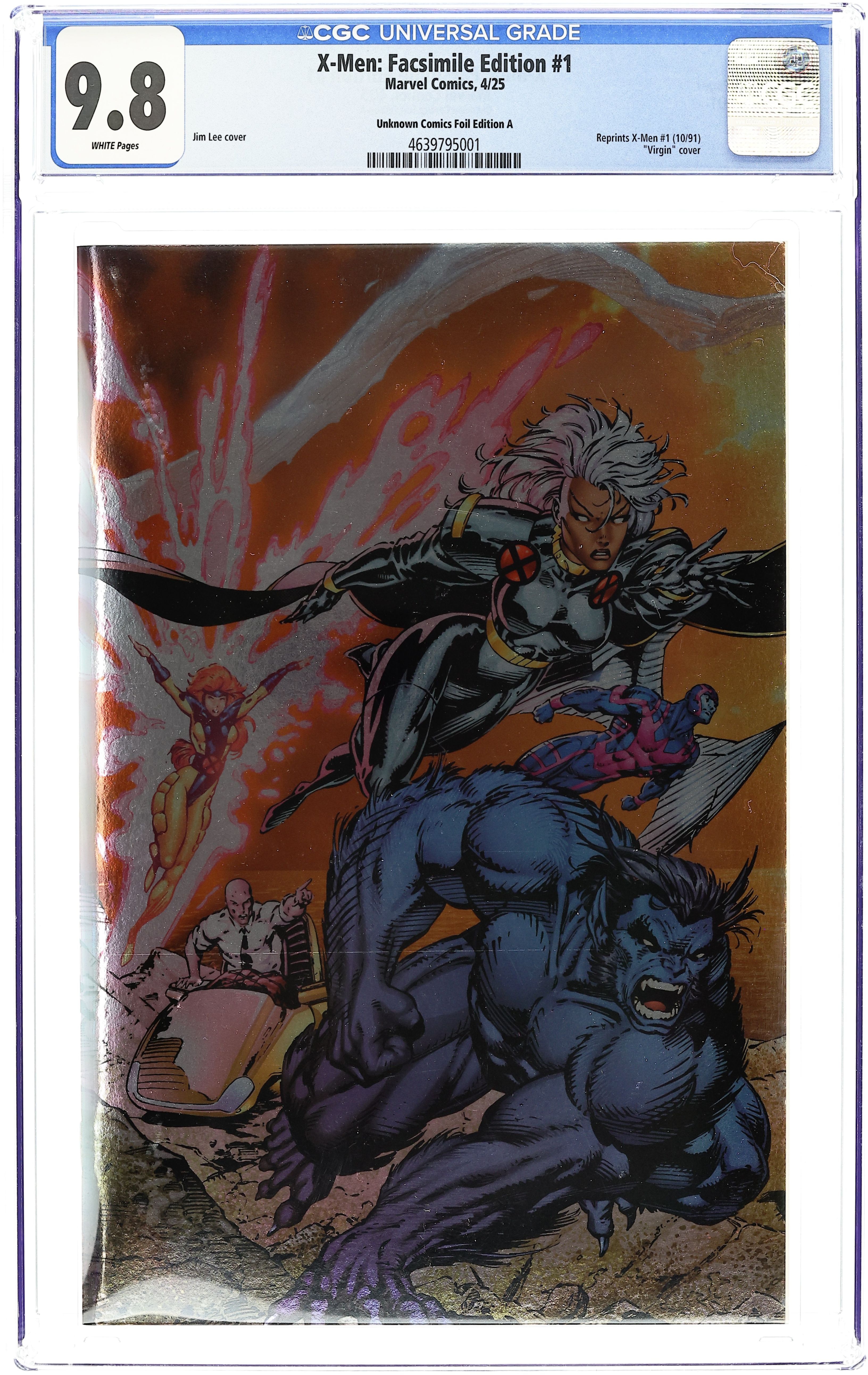 Unknown Comics Exclusive Foil "Storm and Beast" Edition Variant Cover by Jim Lee. Written by Chris Claremont; Jim Lee. Art by Jim Lee. Another chance to buy the best-selling comic book of all time — one that ushered in a new era of X-Men greatness! In 1991, history was made when superstar creators Chris Claremont and Jim Lee launched a second ongoing title for Marvels premier mutant super-group — and the inaugural issue featured an all-star lineup, separated into Cyclops Blue team and Storms Gold team, for an action-packed showdown against their archenemy, Magneto, and his fanatical Acolytes! Featuring fan-favorite characters looking better than ever in bold new costumes that helped define a decade, its no wonder the adjectiveless X-MEN #1 sold an incredible eight million copies! Its one of the all-time great Marvel comic books, boldly re-presented in its original deluxe-edition form, packed with pinups and an iconic wraparound cover! Reprinting X-MEN (1991) #1. 48 pages, full color. Rated T Cover price $7.99.