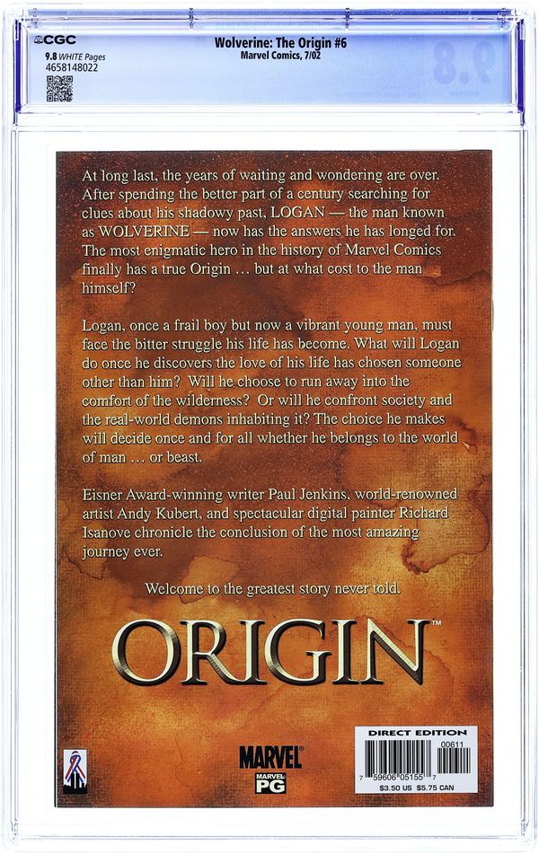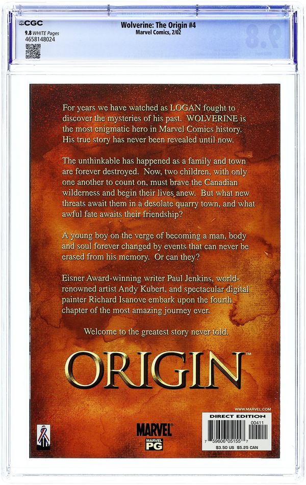 cover by joe quesada paul jenkins/andy kubert ? THE SCOOP: The true story of Wolverine continues! ? THE STORY: Superstar writer Paul Jenkins delivers a mysterious tale set in the early 1900's that reveals the answers to some of Marvel Comics' most asked questions: Who was the man named Logan? When did he acquire his powers? Who was his family? With art by X-veteran Andy Kubert -- and covers by Marvel EIC Joe Quesada -- this tale is sure to be the hottest book of the year! ? THE FORMAT: Each chapter of this six-issue series will be 32 pages, with ads -- printed on glossy stock paper with a cardstock cover. Cover price $3.50.