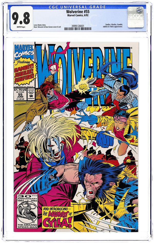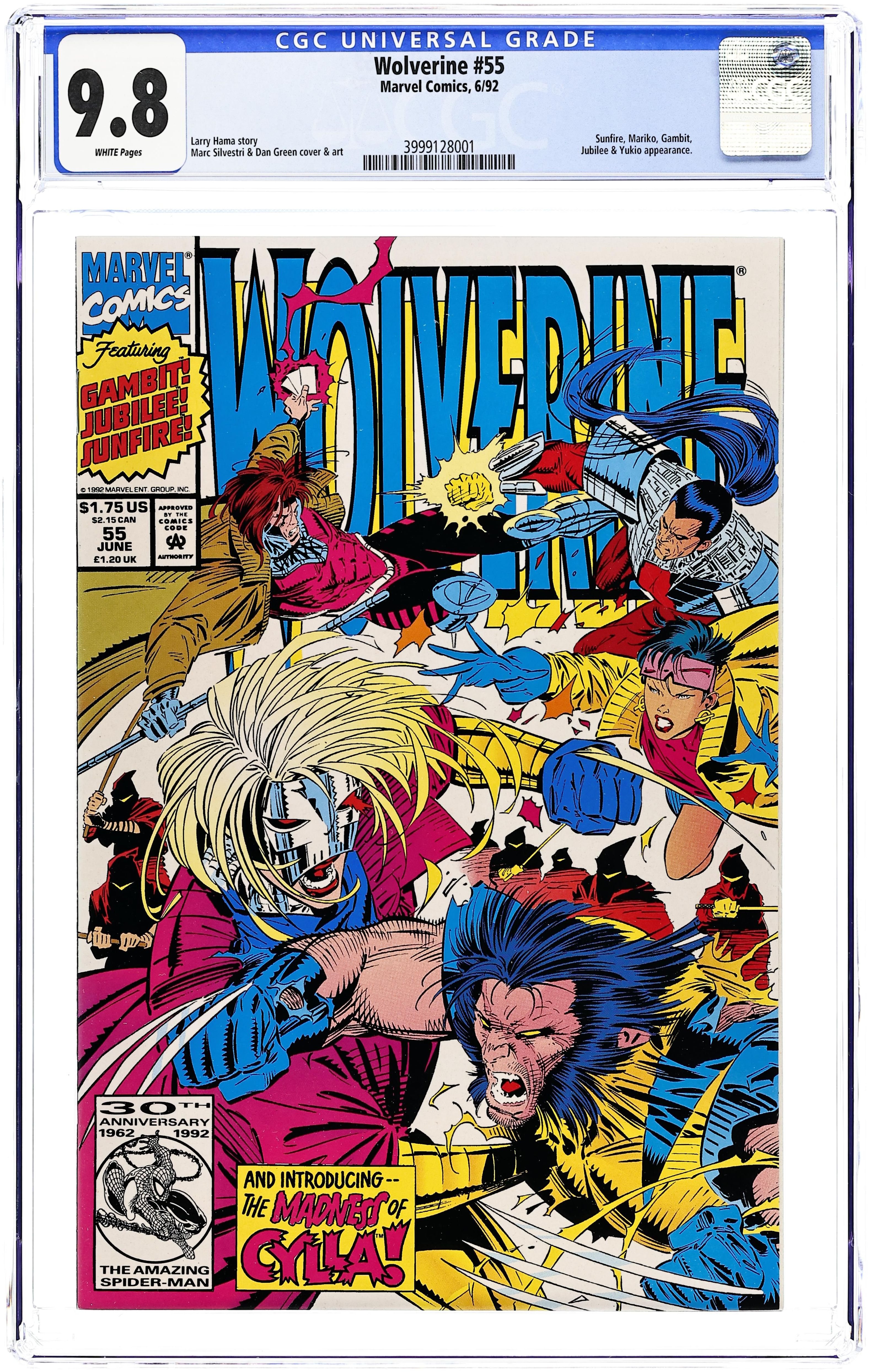 Direct Edition. Part 2 of 3 - "We Got Cylla, Can Mothra be Far Behind!" Guest-starring Gambit, Jubilee, and Sunfire. Featuring the Silver Samurai. Written by Larry Hama. Art by Marc Silvestri and Dan Green. Wolverine, Gambit, and Sunfire face off with the deadly Cylla and the Hand, a clan of deadly ninja assassins. Cover price $1.75.