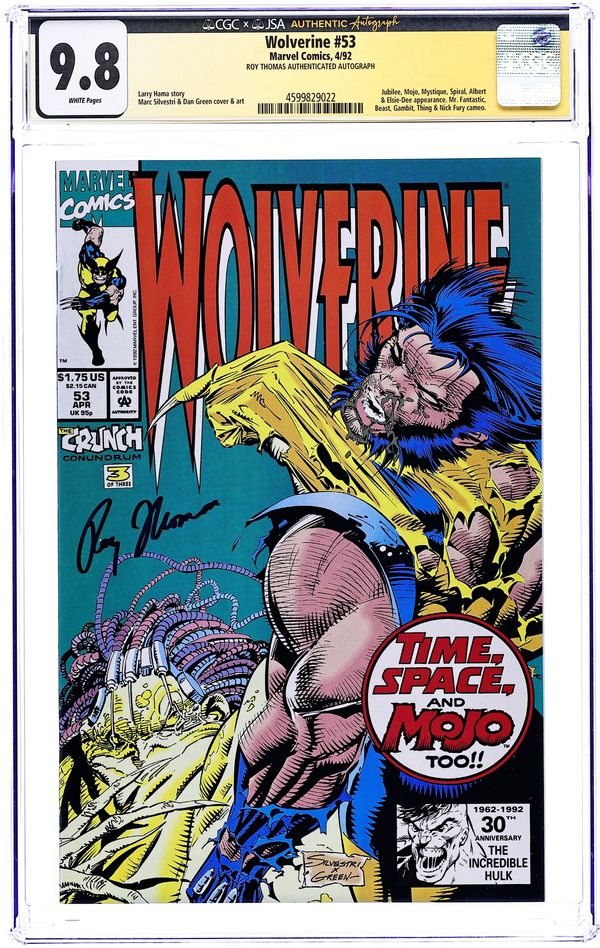 Direct Edition. The Crunch Conundrum: Part 2 of 3 - "Citadel at the End of Time!" Written by Larry Hama. Art by Marc Silvestri and Dan Green. Mojo has sinister plans for the Crunch, so Wolverine, Mystique, and Spiral head into the time/space vortex to stop the spineless villain. 32 pages, FC Cover price $1.75.
