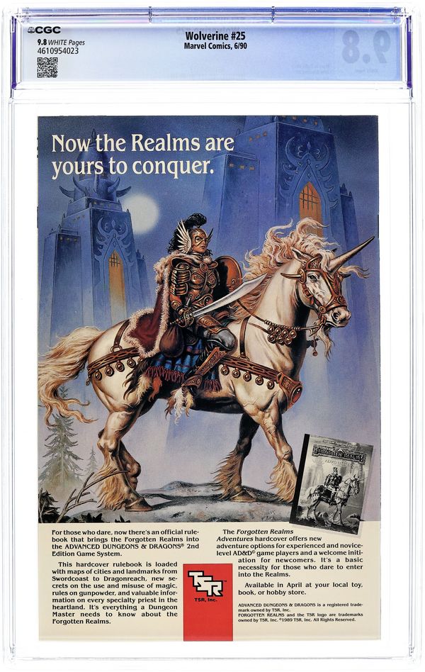 Direct Edition. Acts of Vengeance Aftermath - Part 5 of 7 - "Battlegrounds!" X-Men cameo. Written by Archie Goodwin. Art by John Byrne and Klaus Janson. Hopped up on tainted cocaine, Wolverine's healing factor is pushed to its limits figting the drug's hallucination inducing side effects. He soon discovers the true horror behind Geist's new drug, it's actually Spore, a living disease! 32 pages, FC Cover price $1.50.