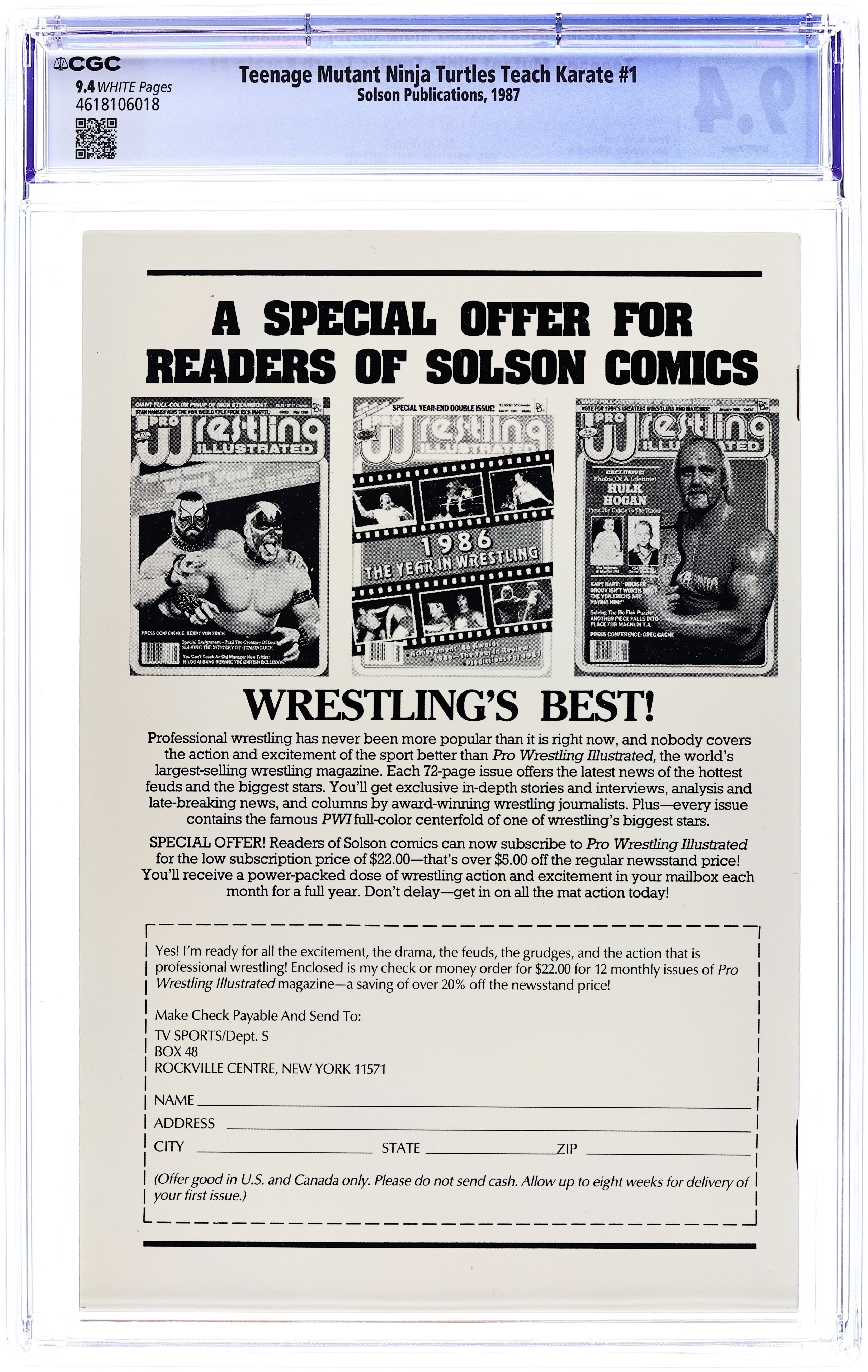 Regular cover by Jason Rodgers and Rich Buckler. Michaelangelo - The Art of the Nunchaku. Text by Peter Brody. Art by Jason Rodgers. A guide to the weapons and martial arts of the Teenage Mutant Ninja Turtles, this issue focuses on the nunchaku, or nunchucks, the short wooden sticks linked by chain that are the preferred weapon of Michaelangelo. 32 pages, B&W. Cover price $2.25.