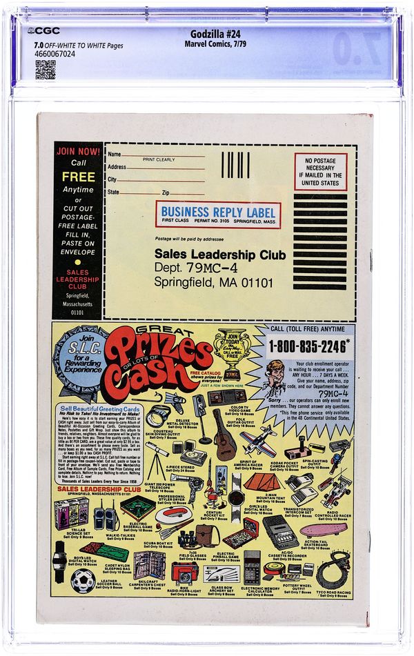 Whitman Variant. "A Tale of Two Saviors!" Guest-starring the Champions. Story by Doug Moench. Art by Herb Trimpe and Tony DeZuniga. Godzilla's west coast tour continues as the great monster arrives in world famous San Francisco Bay with S.H.I.E.L.D. in hot pursuit. But San Francisco is not without its own heroes. Hercules, Black Widow, Ice Man, and the Angel, otherwise known as the Champions, attempt to halt the King of all Monster's rampage before it is too late. Cover price $0.30.