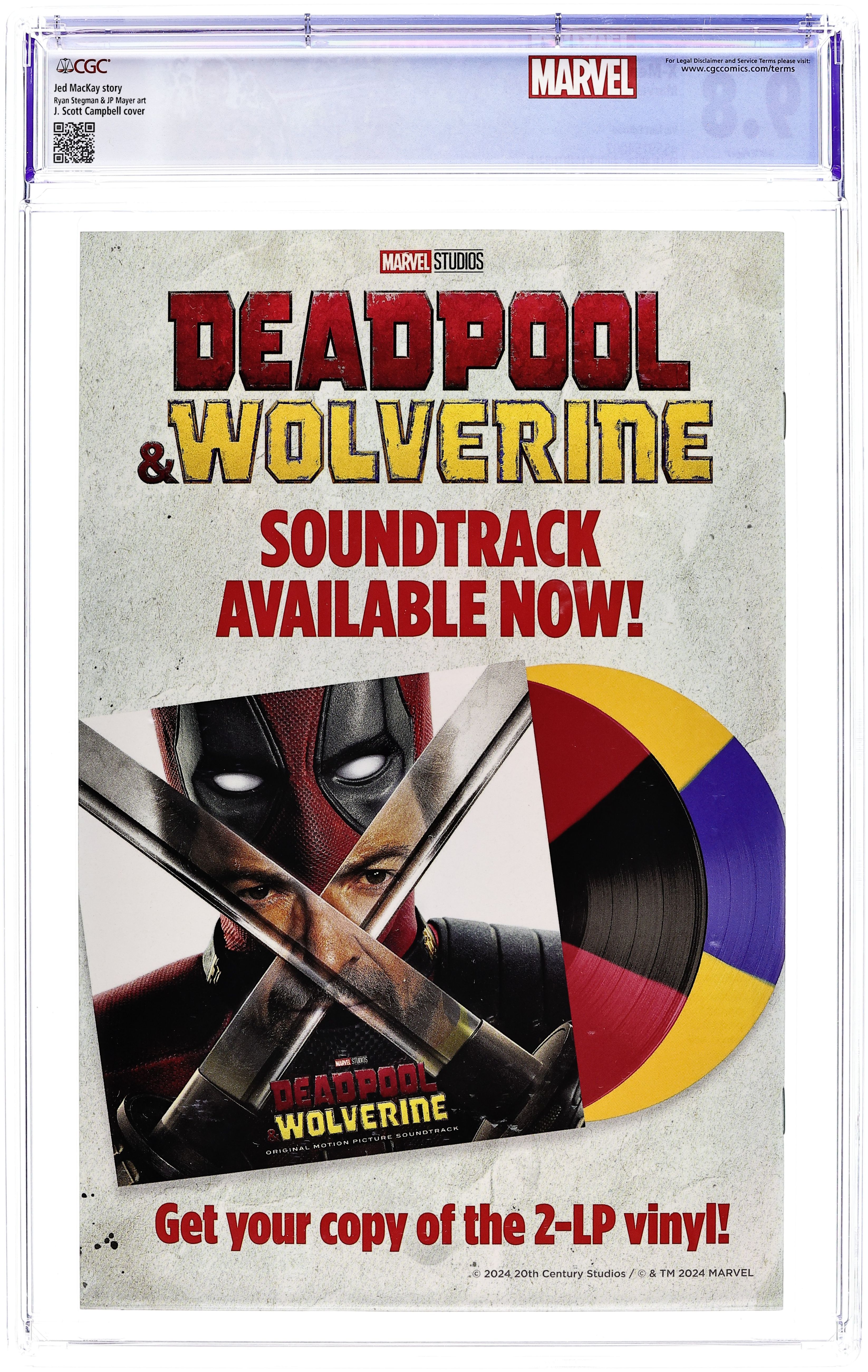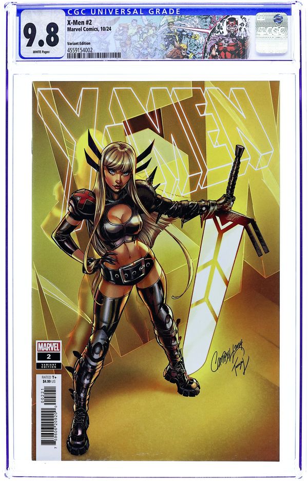 Limited 1 for 100 Retailer Incentive Variant Cover. Written by Jed MacKay. Art by Ryan Stegman. Cover by J. Scott Campbell. INVASION! The X-Men fly to the rescue of a mutant in crisis in San Francisco. The problem? Alien invaders seem to have a similar idea. Six X-Men vs. an invading alien fleet? Sounds about right. PLUS: THE CONCLUSION OF DEADPOOL/WOLVERINE: WEAPON X-TRACTION! 32 pages, full color. Rated T+ Cover price $4.99.