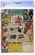 Cover by Dick Sprang. Stories by Alvin Schwartz, Jack Farr and unknown. Art by Dick Sprang, Jack Farr, Howard Sherman, George Roussos and Louis Cazeneuve. The Joker turns the tables on logic, holding a home for ransom instead of people. And to top it off, it all is one giant trap in the Batman and Robin tale "The House That Was Held for Ransom!" by Alvin Schwartz and Dick Sprang. Plus: Three-Ring Binks in an untitled story by Jack Farr; Slam Bradley in "Smash Your Baggage!" with art by Howard Sherman; Air Wave in "Of Mice and Muggs!" with art by George Roussos; and The Boy Commandos in "The Floating Evil!" with art by Louis Cazeneuve (not by Simon and Kirby, despite the listed credits). Also: 2-page text story "Crime's Henchman" by Ted Udall (as Ted Loury). 52 pages, full color. Cover price $0.10.