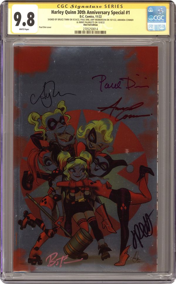 Harley Quinn 30th Anniversary Special (2022 DC) 1DINI.C CGC 9.8 SS Timm/ Dini/ Mebberson/ Conner/ Palmiott Mebberson Dini Foil Virgin Variant
