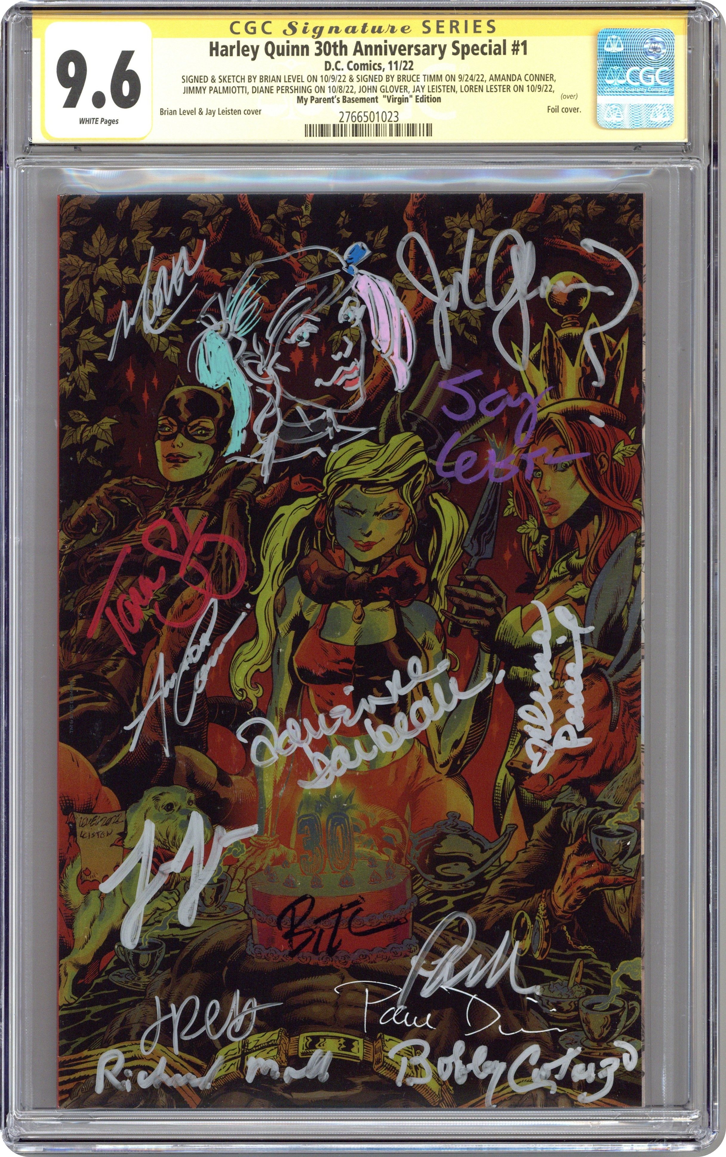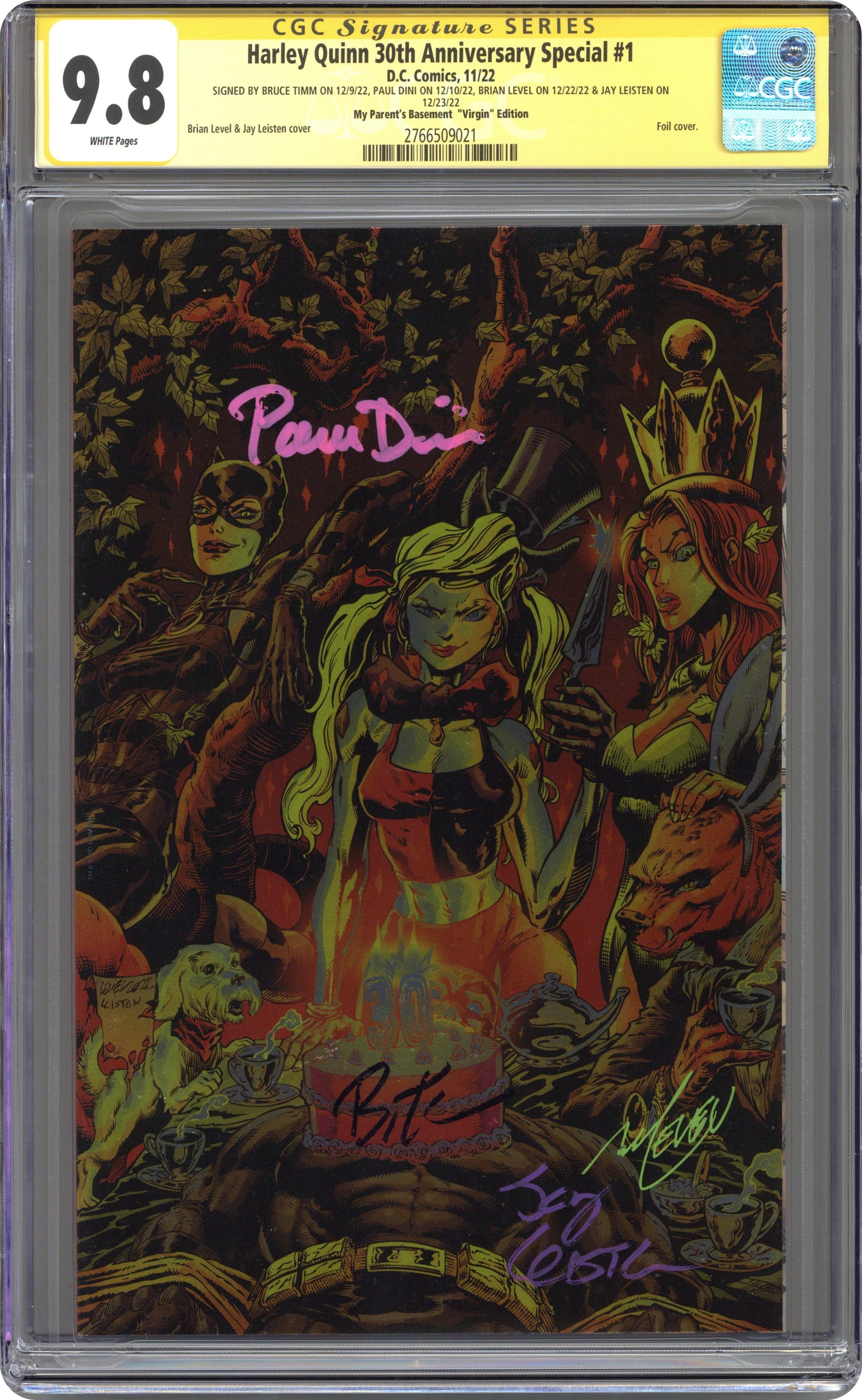 Harley Quinn 30th Anniversary Special (2022 DC) 1DINI.C CGC 9.8 SS Multiple signatures and sketch Mebberson Dini Foil Virgin Variant