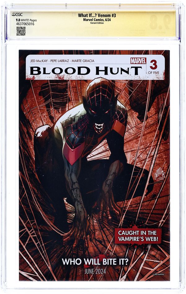 The Syndicate (The 616 Comics, Comic Traders, and Fandom Comic Shop) Exclusive Virgin Cover by Tiago Da Silva. Werewolf By Night #32 Cover homage. Written by Jeremy Holt. Art by Jesus Hérvas. Years ago, in a familiar church tower, the Venom symbiote was spurned by Peter Parker and found a willing host in the vengeful and wrathful Eddie Brock! Or, at least, that's the story you know! From rising stars JEREMY HOLT (MARVEL'S VOICES: SPIDER-VERSE) and JESÚS HERVÁS (MARVEL: UNLEASHED) comes an ALL-NEW look at what makes the Marvel Universe's most sinister symbiote tick, with a journey that reimagines its earliest days bonded to a host with a rage and temper ENTIRELY different from those of Eddie Brock! 32 pages, full color. Rated T+