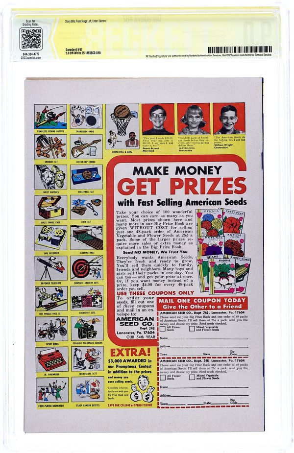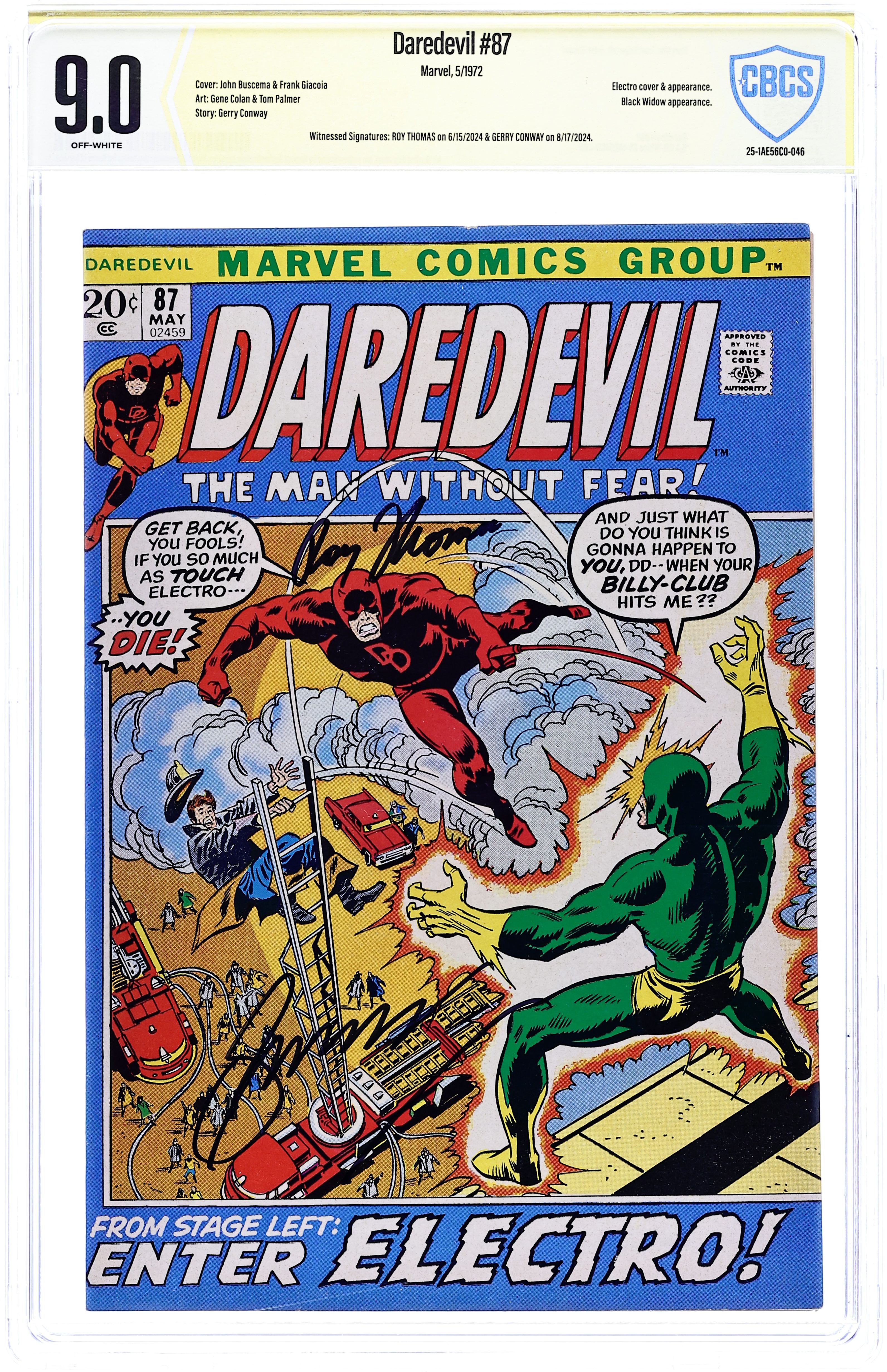 Tags: Marvel Legacy Numbering: Daredevil (part 87), Print Run Statistics, Black Widow, Daredevil, Electro$175.00- CBCS Authentic Signature