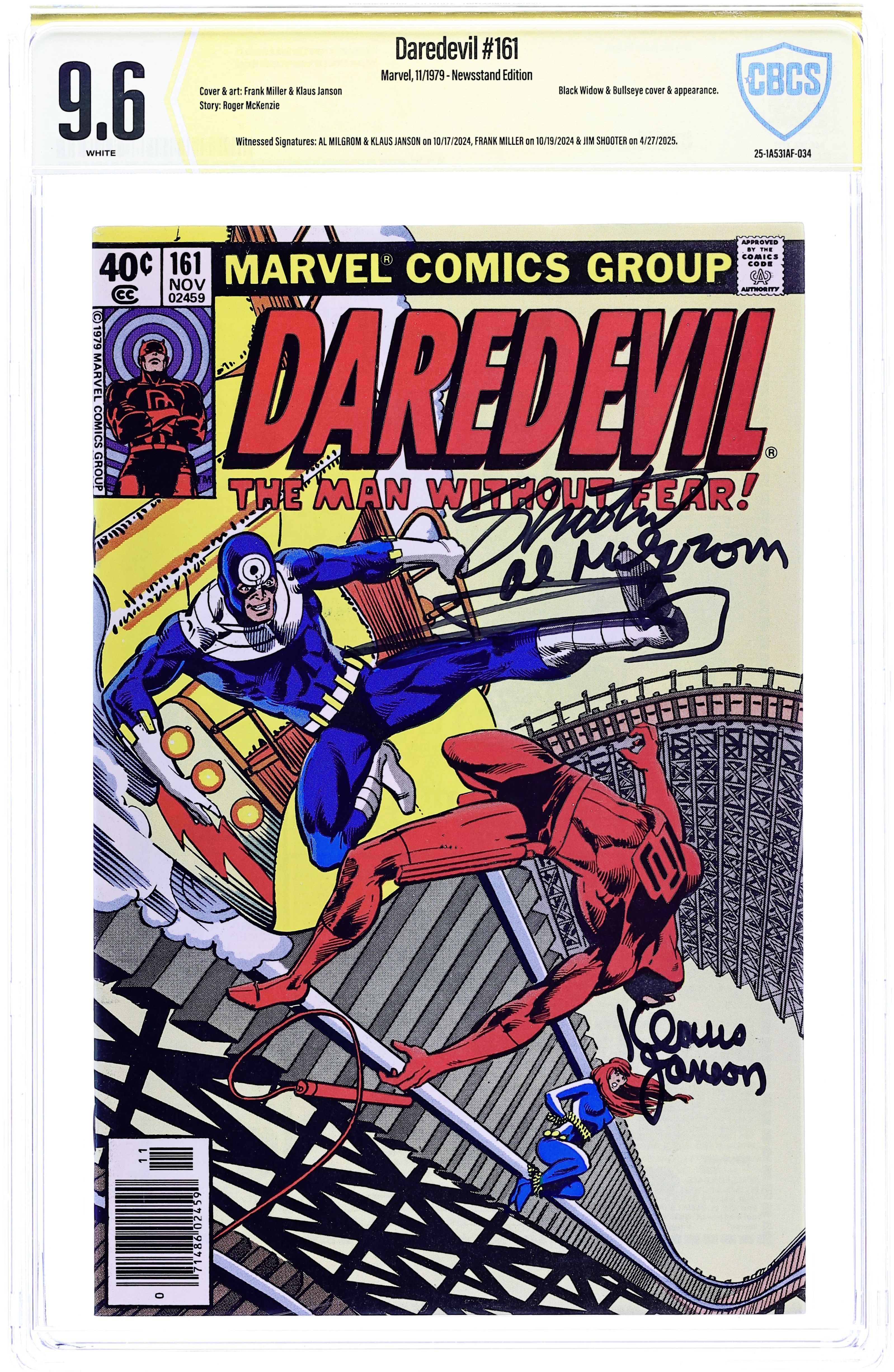 - Newsstand Edition. Witnessed Signatures: Al Milgrom & Klaus Janson on 10/17/2024, Frank Miller on 10/19/2024 & Jim Shooter on 4/27/2025.