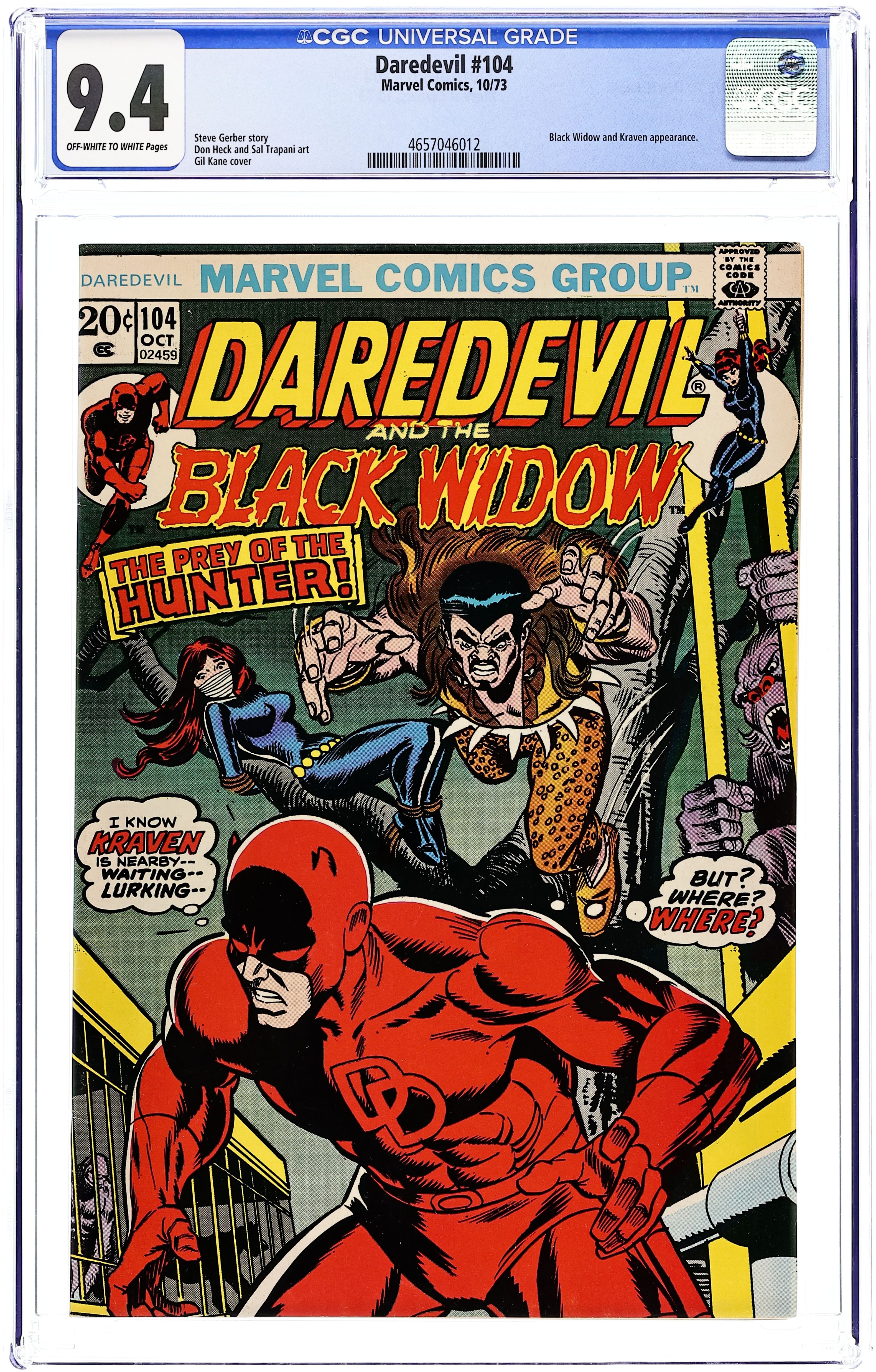 Cover pencils by Gil Kane, inks by Frank Giacoia. Prey of the Hunter!, script by Steve Gerber, pencils by Don Heck, inks by Sal Trapani; "The Man" sends Kraven to kill Daredevil; The villain crashes a party at the home of Kerwin J. Broderick, the senior partner in Matt's law firm, and gets the drop on Daredevil. 36 pages. Cover price $0.20. Cover price $0.20.