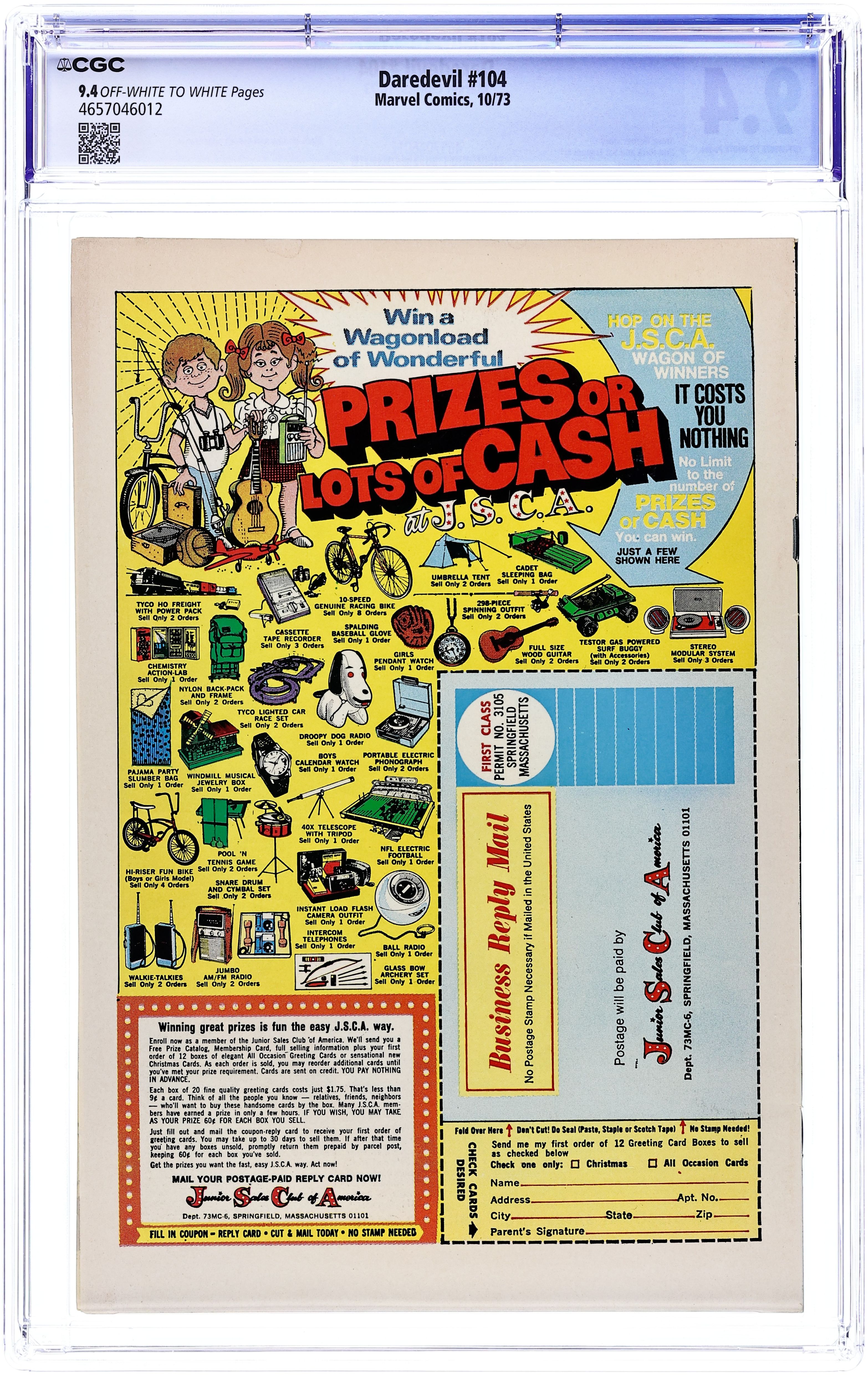 Cover pencils by Rich Buckler, inks by Frank Giacoia. First appearance of Angar the Screamer in Mind Storm!, script by Steve Gerber, pencils by Gene Colan, inks by John Tartaglione; Daredevil returns to San Fran in time to give an impromptu interview to Rolling Stone Magazine during which the whole world goes nuts; Angar shows up to claim responsibility; Daredevil origin retold; appearance by Jann Wenner (editor of Rolling Stone magazine); cameos by the Jester, Leap-Frog, the Matador, Tagak, Doctor Doom, the Gladiator, the Black Widow, Mike Murdock, and a John Lennon poster. 36 pages. Cover price $0.20. Cover price $0.20.
