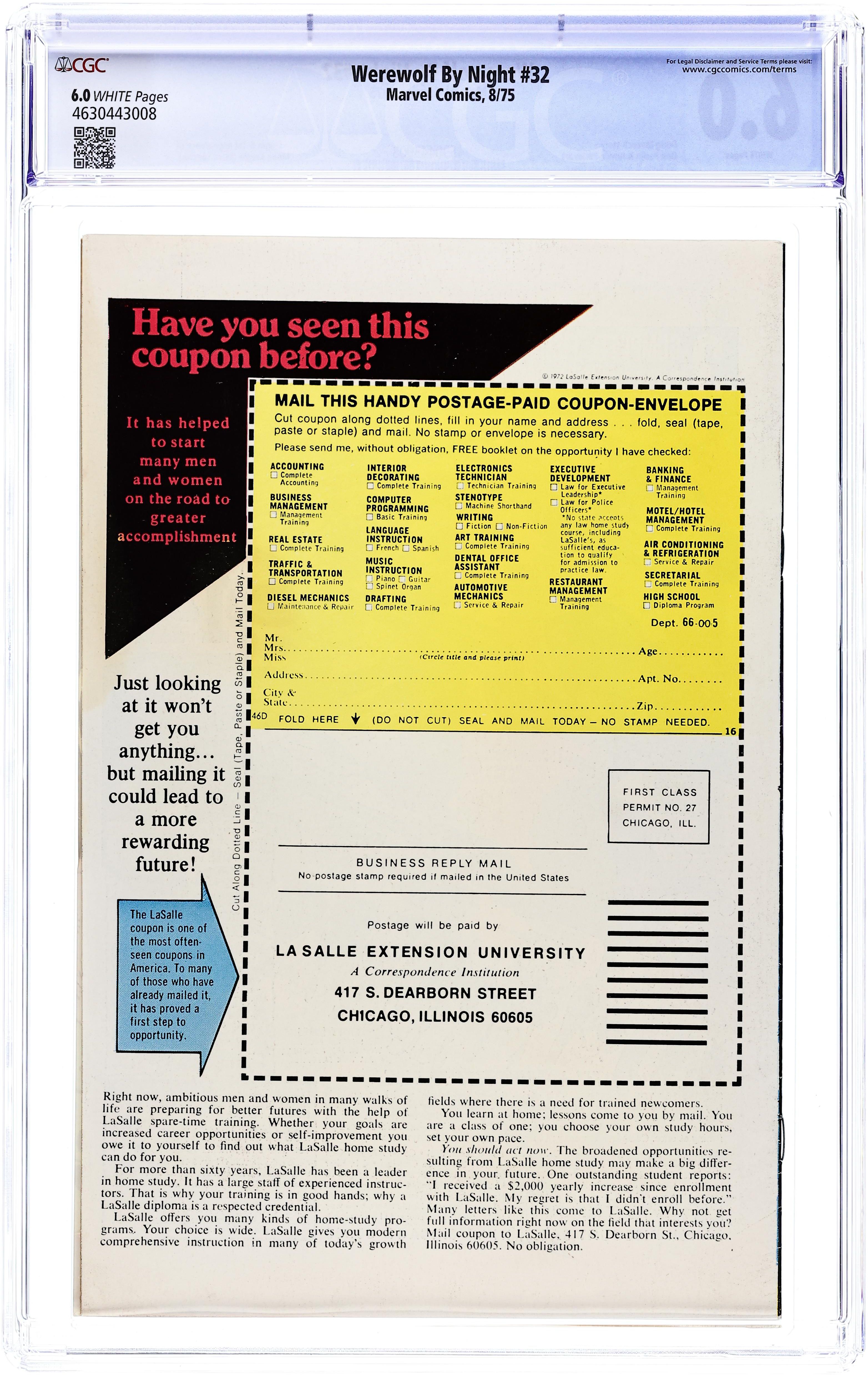"Wolf-Beast vs. Moon Knight!" Written by Doug Moench. Art by Don Perlin and Howie Perlin. Cover by Gil Kane. The werewolf unleashed, more savage than ever before! A shocking twist as the beast faces the cages of the Committee. 32 pages, FC. NOTE: 2nd appearance of Moon Knight. Cover price $0.25.