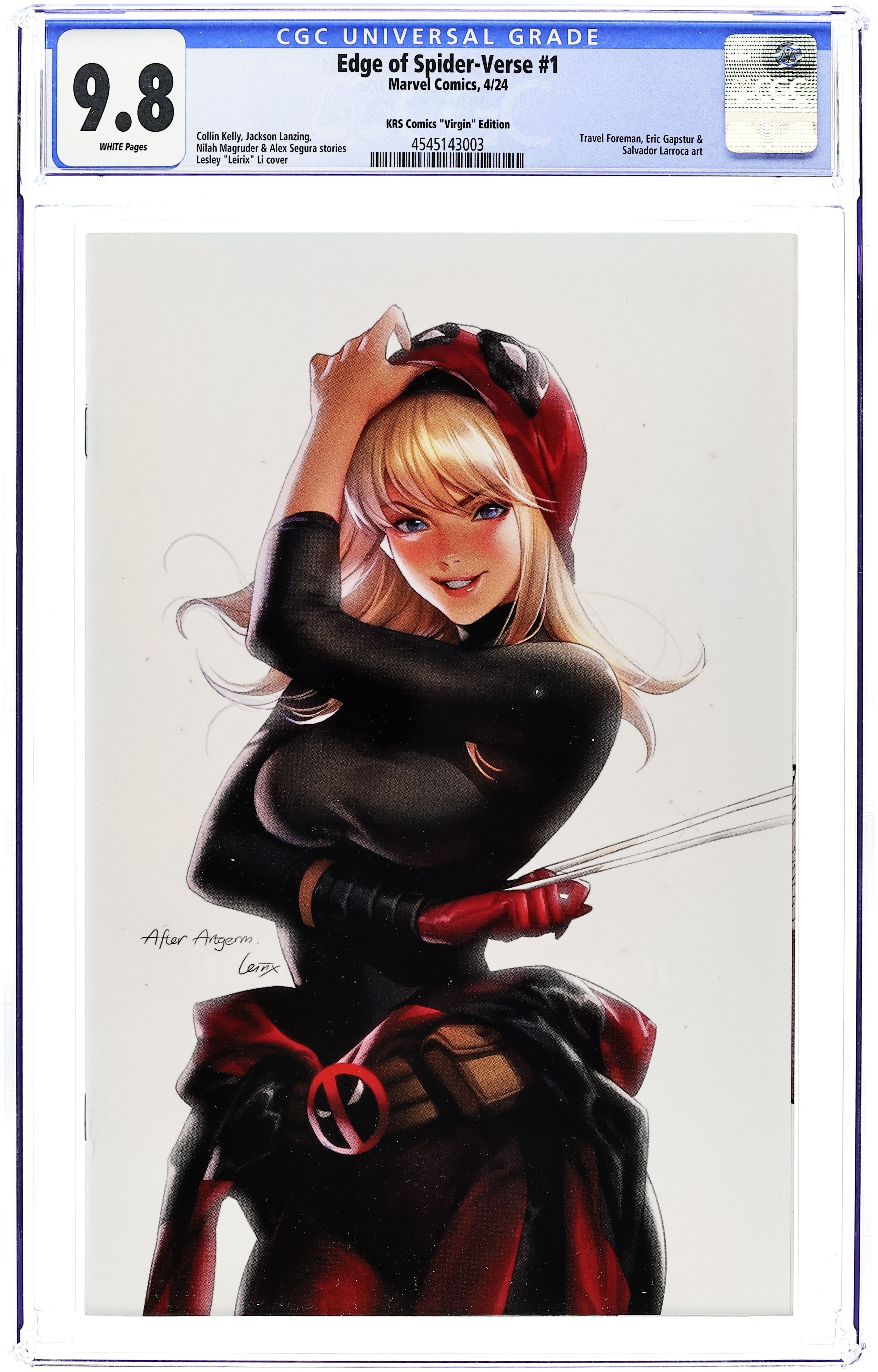 Surprise variant by Mattia De Iulis. Issue will be unbagged for grading. Written by Jackson Lanzing; Nilah Magruder, Alex Segura. Art by Travel Foreman; Eric Gapstur, Salvador Larroca. Cover by Chad Hardin. The now perennial Spider-Hit is back as we start the build to the biggest Spider-Versal story we've EVER DONE! We all know who Weapon X is, but WHO IS WEAPON VIII?! In their universe, when Weapon X escapes from his facility, they call on their greatest previous success to get him back. SPIDER-BYTE RETURNS! You may not have realized that the digital avatar Spider-Character who made her big screen debut in Across the Spider-Verse came from the comics first! She's back in comics now and you don't want to miss her! 40 pages, full color. Rated T+ Cover price $4.99.