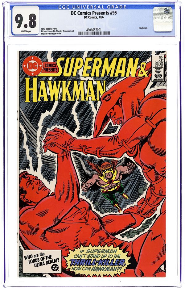 An invincible Thanagarian thrill-killer makes Superman his quarry! Writers Tony Isabella and Alan Gold lead you into super-hero action and an ongoing Hawkman series! Pencils by Richard Howell, inks by Murphy Anderson. Cover by Anderson. Cover price $0.75.