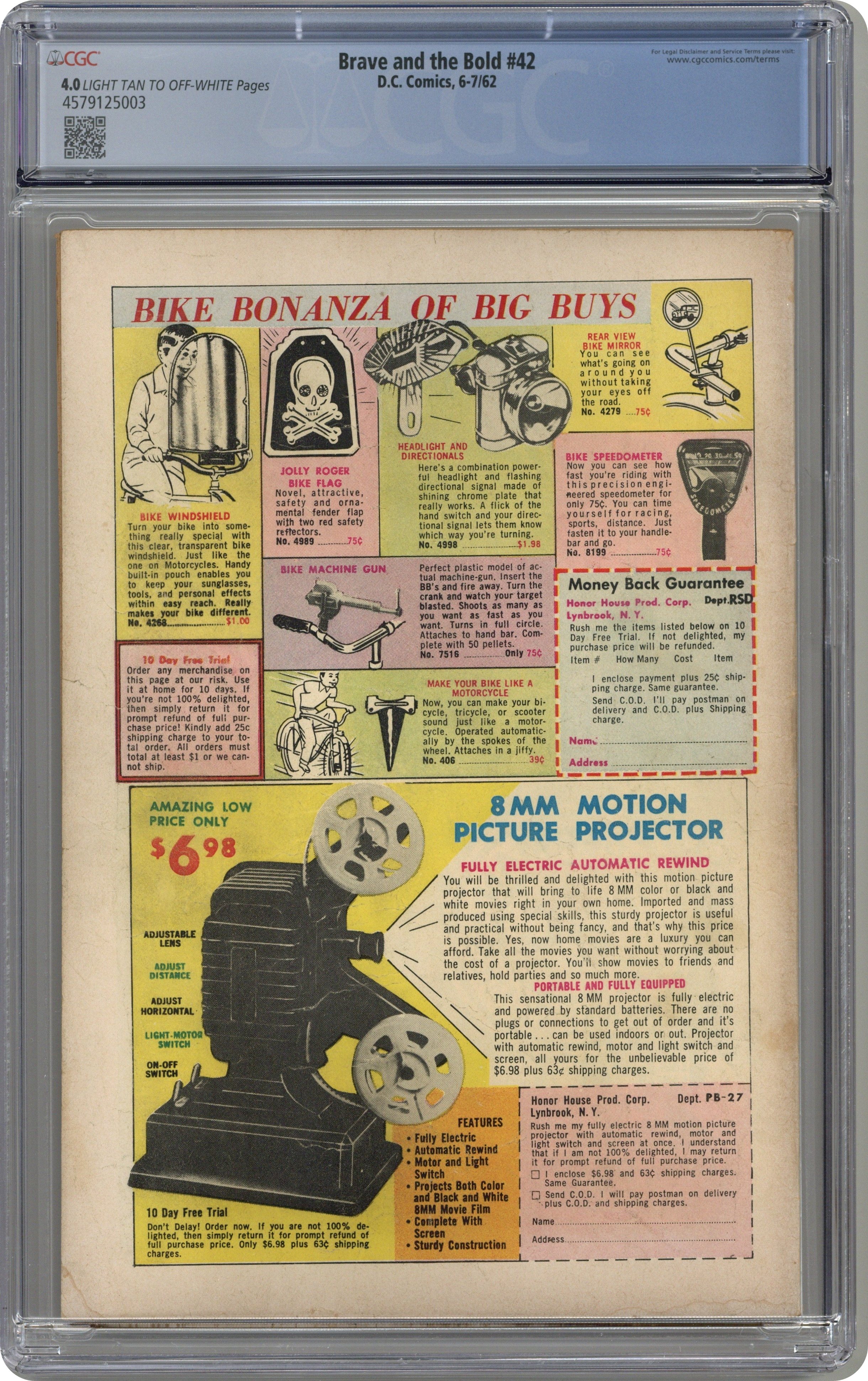 Cover by Joe Kubert. 1st Silver Age appearance of Hawkman in "Creature of a Thousand Shapes!", script by Gardner Fox, art by Joe Kubert; Katar and his wife Shayera, police officers from the Planet Thanagar, come to Earth in pursuit of a shape-shifting criminal from their world; Police Commissioner Emmett helps them to establish secret identities, and, after they have succeeded in their mission, helps convince them to stay on Earth. Letter to the editor from comic writer Roy Thomas. 36 Pages, Full Color. Cover price $0.10.