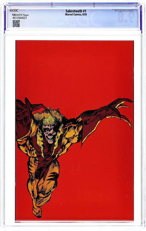 Die-cut cover, painted cover art by Mark Texeira. Home is the Hunter, script by Larry Hama, art by Mark Texeira; Sabretooth is tied down to an operating table with a bomb placed inside his chest; Tribune wants him to kill Mystique. The story takes place after the events in Wolverine #64.Wolverine appearance. Sabertooth pinup by Travis Charest. Sabertooth pinup by Michael Golden. Back cover art by Mark Texeira. 4-Issue Limited Series. 40 pgs. $2.95. Cover price $2.95.
