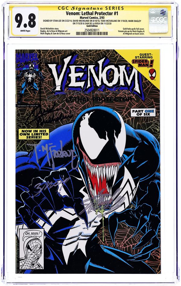 - Signed by Stan Lee on 3/22/14, David Michelinie on 8/18/18, Todd McFarlane on 1/18/20, Mark Bagley on 7/15/20 & Sam De la Rosa on 11/22/20. Gold Edition.