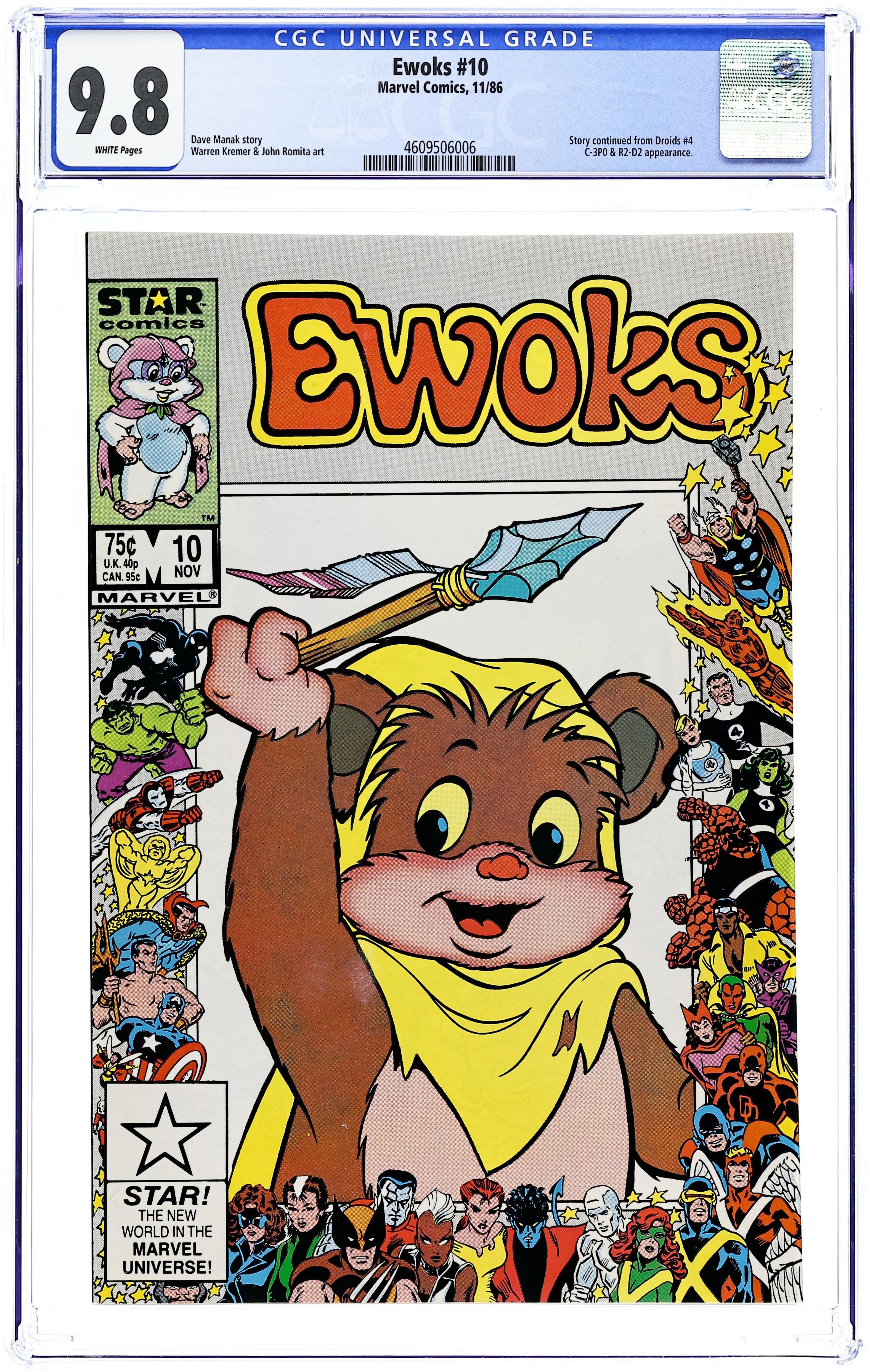 Direct Edition. Written by Dave Manak. Art by John Romita, Warren Kremer and Jon D'Agostino. The unusual crossover that began in Star Wars Droids (1986 1st Series Marvel/Star Comics) #4 concludes in the prehistoric past of the Ewoks' world of Endor! How can the Ewoks, R2-D2 and C-3PO stop the destruction happening in their own time when they're faced with their own imminent destruction in the far past? Featuring "The Demons of Endor" (Part 3) and "A Race in Time" (Part 4). 32 pages, full color. Cover price $0.75.