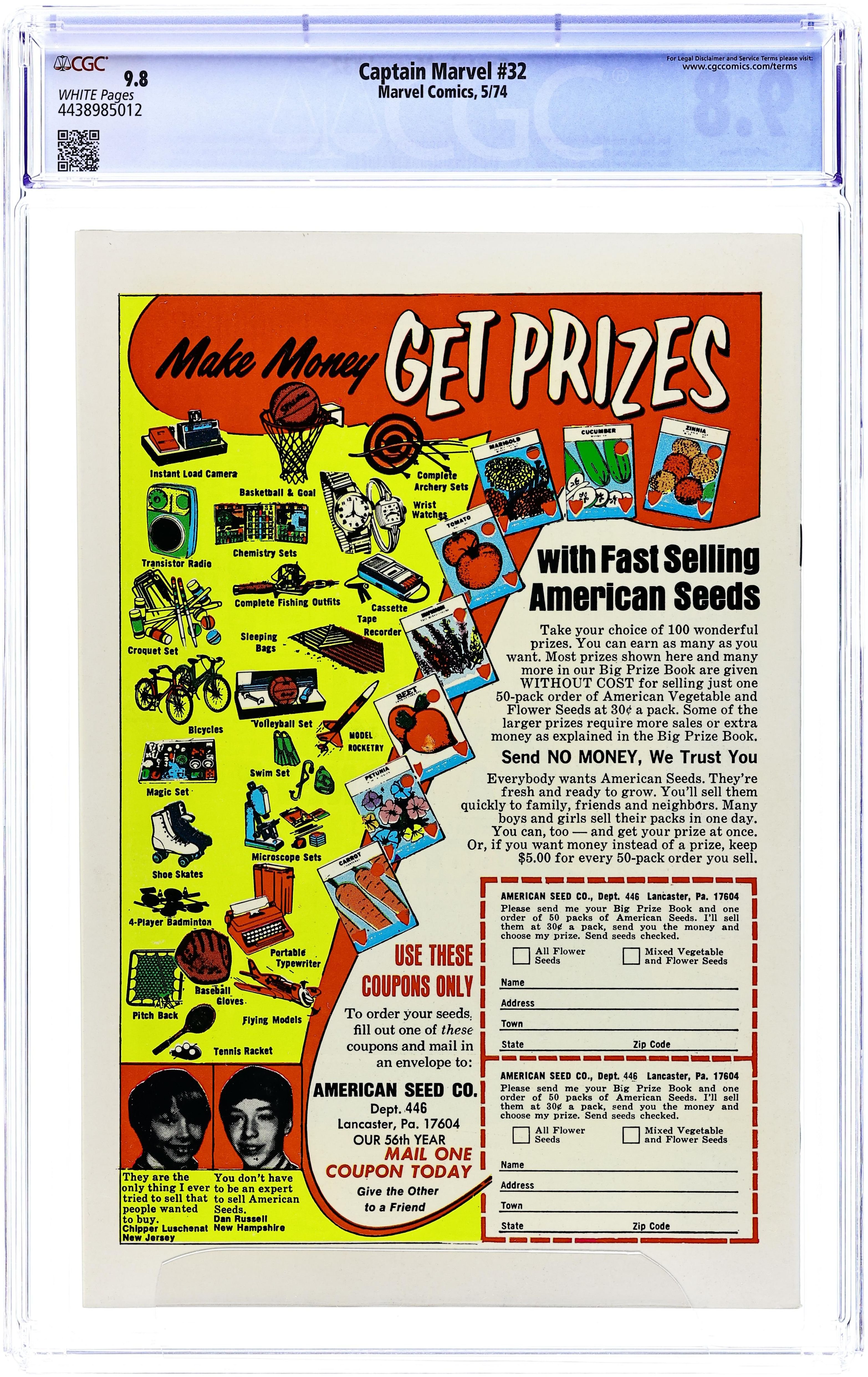 "The Power of Babel!" Guest-starring Captain Marvel. Script by Steve Englehart. Art by John Buscema (breakdowns) and Dave Cockrum (finishes). Cover by Ron Wilson and John Romita. Story continues from Captain Marvel 32. Captain America returns to the Avengers just in time for an out-of-this-world adventure! Earth's Mightiest Heroes blast off into outer space to intercept Thanos' awesome armada headed towards Earth! The Avengers attack the alien starships and inflict heavy damage until they bump into a solid black force field! What's hiding behind the imposing barrier? The Vision, Scarlet Witch, Swordsman, and Mantis penetrate the force field and discover the mad Titan's massive command ship! And hordes of aliens inside! But these are four mighty avengers! With skill and teamwork, they disable the ship's universal translator and throw the entire attack fleet into chaos! Have the Avengers finally derailed Thanos' plan for conquest of the cosmos? Story concludes in Captain Marvel 33. Cameo appearances by Libra, Lou-Ann, Thanos, and the Skrulls. Avengers Lineup: Black Panther, Captain America, Iron Man, Mantis, Scarlet Witch, Swordsman, Thor, and the Vision. (Note: The letters page contains Marvel Value Stamp Series A #69 Marvel Girl.) 36 pages Cover price $0.25.