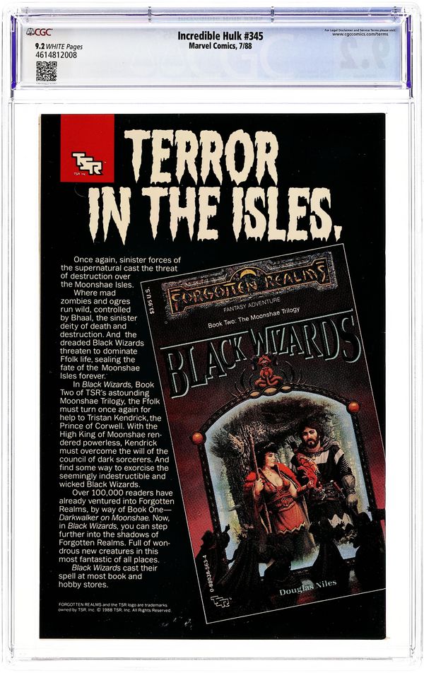 Ends Dec 8 8:37 PM CST Bid History 7 bids Current Bid $37 Your Secret Max Bid If you'd like to bid, please log in or register. First Printing. Direct Edition. Ajax, Atalanta, Igor Drenkov, Red Guardian, Fantasma, Perun, Vostok, Leader (flashback), Abomination (flashback), Juggernaut (flashback), Dr. Doom (flashback), Thanos (flashback), and Modok (flashback), script by Peter David, pencils by Dale Keown, inks by Mark Farmer; Hulk finally has his vengeance on the Russian spy who didn't stop the gamma bomb test which turned Bruce Banner into the Hulk; origin of Hulk. Hulk/Wolverine pinup by Herb Trimpe. Hulk/Thor pinup by Ron Frenz and Al Milgrom. Grudge Match, script by Peter David, pencilsby Herb Trimpe, inks by Herb Trimpe and Charles Barnett. Hulk/Leader pinup by Sal Buscema. Hulk/Abomination pinup by Gil Kane. Psychological Ramifications of Gamma Radiation article by Peter David. Hulk/Krylorian Warriors pinup by Walt Simonson. Hulk/Thing pinup by Jim Starlin. Hulk/The Pantheon pinup by Dale Keown. 68 pgs. $2.50. Cover price $2.50.