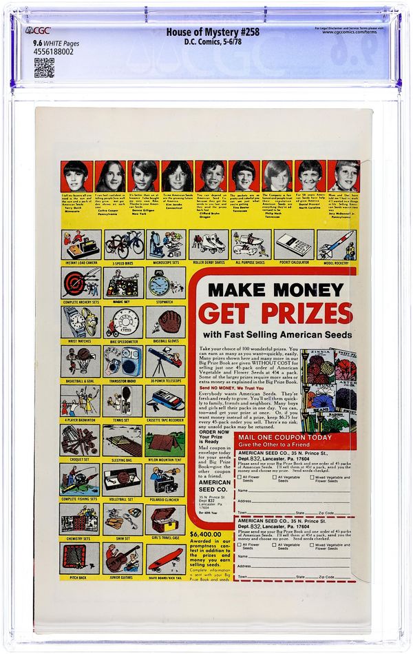Cover art by Nick Cardy. We Challenge You to Read On!, art by Tony DeZuniga; Introduction to the concept of ghosts featuring Abraham Lincoln, Arthur Conan Doyle, and Mark Twain. Death's Bridegroom!, script by Leo Dorfman [as Geoff Brown], art by Jim Aparo; She had waited years for her betrothed, only to have a con man stage a weirdo wedding--until she pulled the last trick on him! Ghost in the Iron Coffin, script by Leo Dorfman [as David George], art by Sam Glanzman. The Tattooed Terror!, script by John Broome, pencils by Carmine Infantino, inks by Sy Barry. The Last Dream!, script by John Broome, pencils by Carmine Infantino, inks by Sy Barry. The Spectral Coachman!, script by Leo Dorfman, art by Tony DeZuniga; Tombstone, Arizona, draws its name from the town graveyard where the greatest badmen of the west are buried. 52 pgs. $0.25. Cover price $0.25.