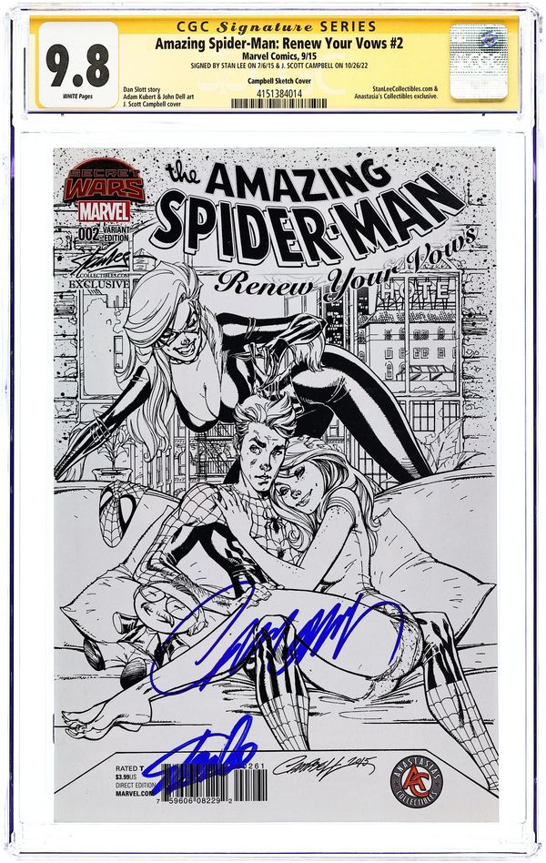 Amazing Spider-Man Renew Your Vows (2015) 2STANLEE.B CGC 9.8 SS Lee/Campbell Campbell Stan Lee B&W Variant
