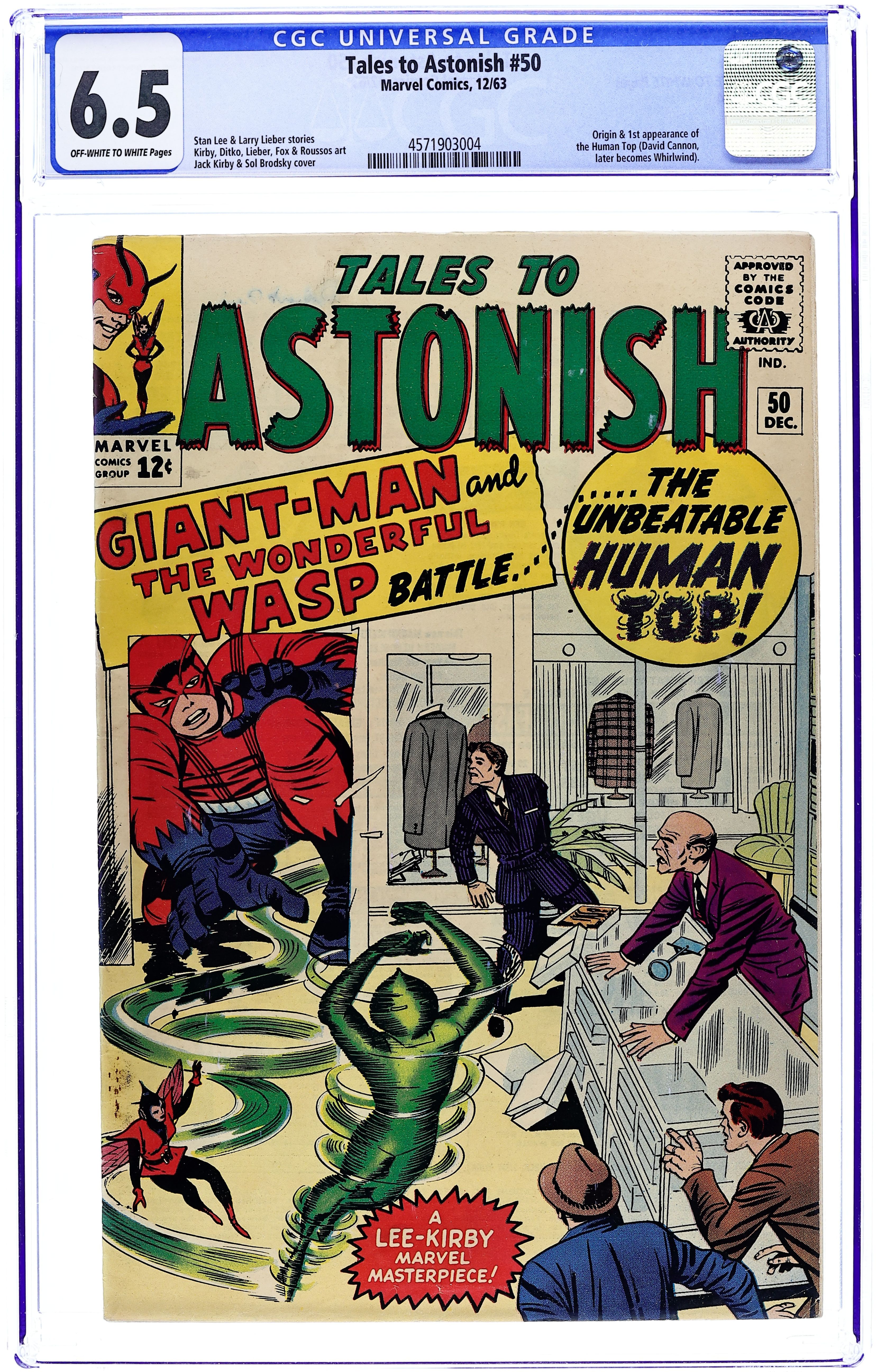 Cover by Jack Kirby and Sol Brodsky. The Human Top!, script by Stan Lee, art by Jack Kirbym, Steve Ditko, and Don Heck; Henry Pym follows the crime spree of the Human Top in the newspapers but the Wasp convinces Henry to go after him as Giant-Man. Mystery Trip text story, art by Joe Maneely; Tommy's uncle returns from a space journey needing to re-learn how to walk on earth instead of floating. The Secret of Sagattus!, script by Stan Lee and Larry Lieber, art by Larry Lieber and Matt Fox; A wise king listens only to the advice of a hunchback, causing the jealous nobles to murder the hunchback. No Ending!, script by Stan Lee and Larry Lieber, art by Larry Lieber; A dictator is tormented by dreams of running on a treadmill suspended high in the sky. 36 pgs., full color. $0.12. Cover price $0.12.