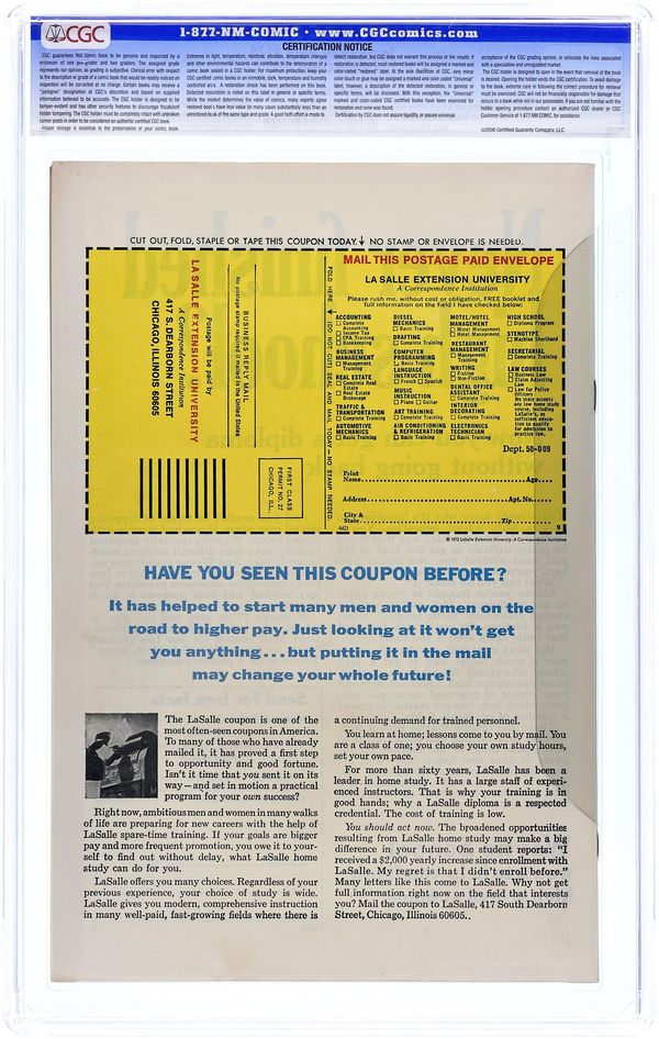 Cover pencils by Herb Trimpe, inks by John Severin. They Shoot Hulks, Don't They?, script by Roy Thomas, pencils by Herb Trimpe, inks by John Severin; The Hulk is the focus of a social event as the Parringtons bring him to a party but their women's lib daughter is given the powers of the Valkyrie by the Enchantress and battles the jade giant. House ad for Conan the Barbarian #8, pencils by Barry Smith. Cameo by author Tom Wolfe. (This story is inspired in part by Wolfe's novel "Radical Chic.") 36 pgs. $0.15. Cover price $0.15.
