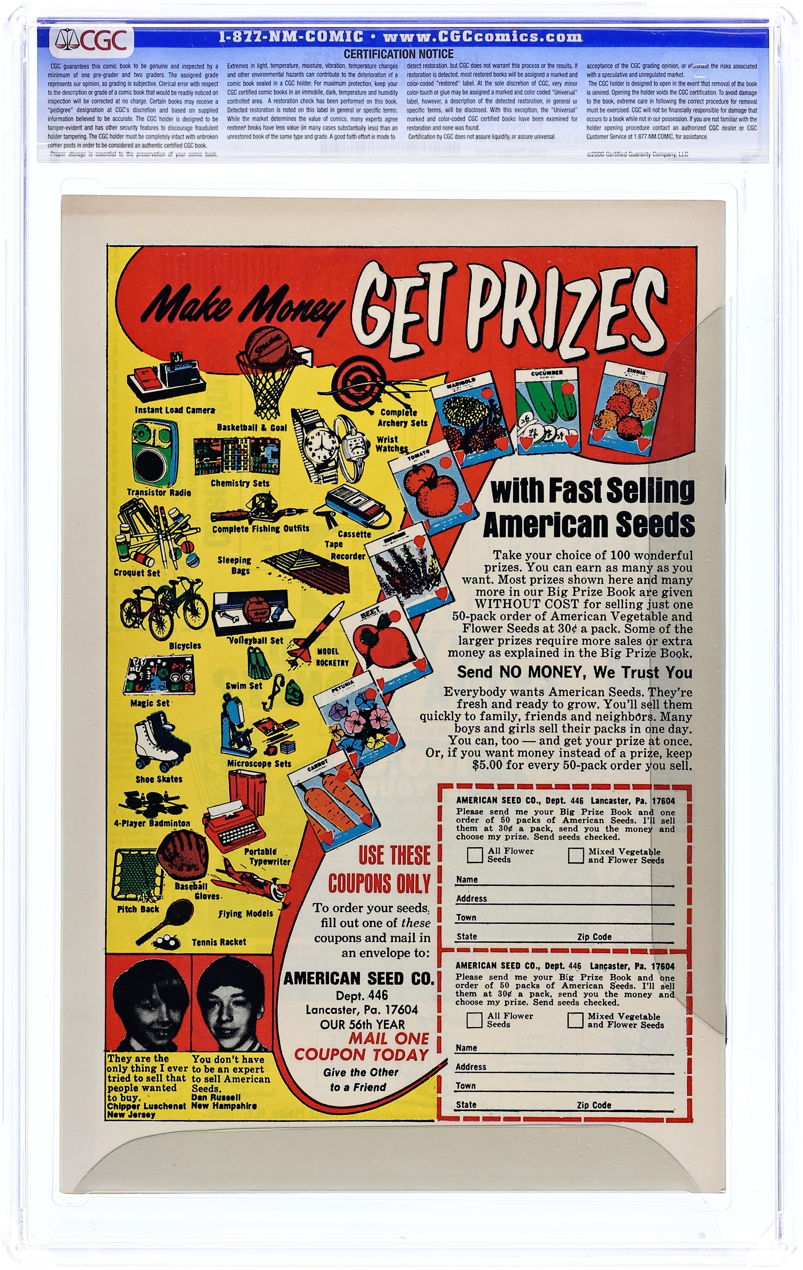 Cover pencils by Herb Trimpe, inks by Sal Trapani. Beyond the Border Lurks Death!, script by Steve Englehart, pencils by Herb Trimpe, inks by Sal Trapani; The Hulk stumbles across a remote cabin in Canada where Hank McCoy is trying to cure the Mimic of a condition which is making his powers go out of control. The heroes fight, and Mimic temporarily absorbs the gamma radiation out of the Hulk, turning him back to Banner, but killing Mimic in the process. 36 pgs. $0.20. Cover price $0.20.