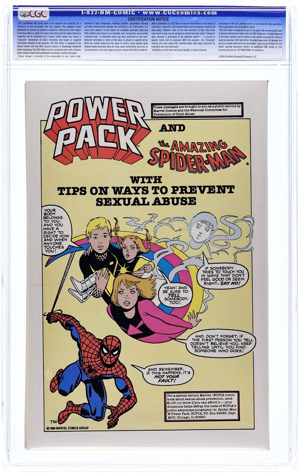 Starts Dec 22 1st Printing. "Quality of Life!" Story by Peter David. Art by Todd McFarlane and Pablo Marcos. What could possibly make a battered wife stand between the Hulk and her abusive husband? Plus, who is Ramon and what does he mean to Betty Banner? 36 pages. NOTE: 1993 JC Penney reprint exists. It can be identified by having the words "The Amazing Spider-Man" printed in the UPC box. Cover price $0.75.