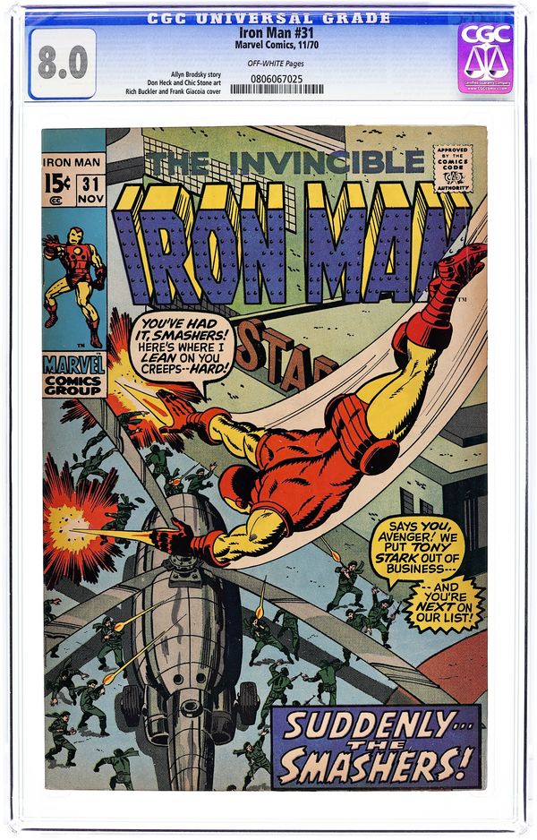 "Anything for the Cause!" Story by Allyn Brodsky. Art by Don Heck and Chic Stone. A renegade group called the Smashers incites a riot outside the Stark Industries factory on the small Pacific Island of Lakani. Now Iron Man must stop the anti-establishment group and find the traitorous employee inside his factory. First appearance of Kevin O'Brien. 32 pages Cover price $0.15.