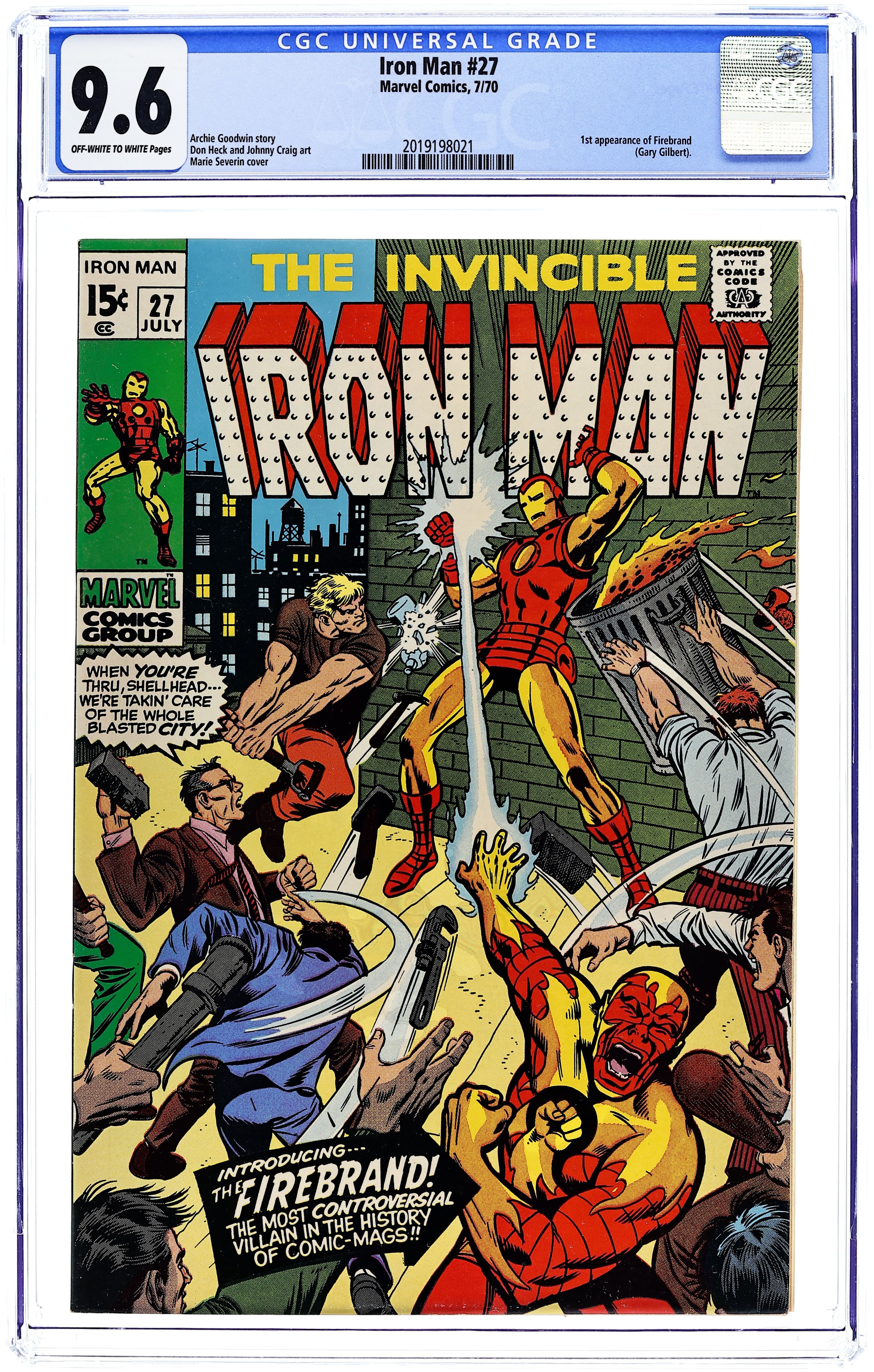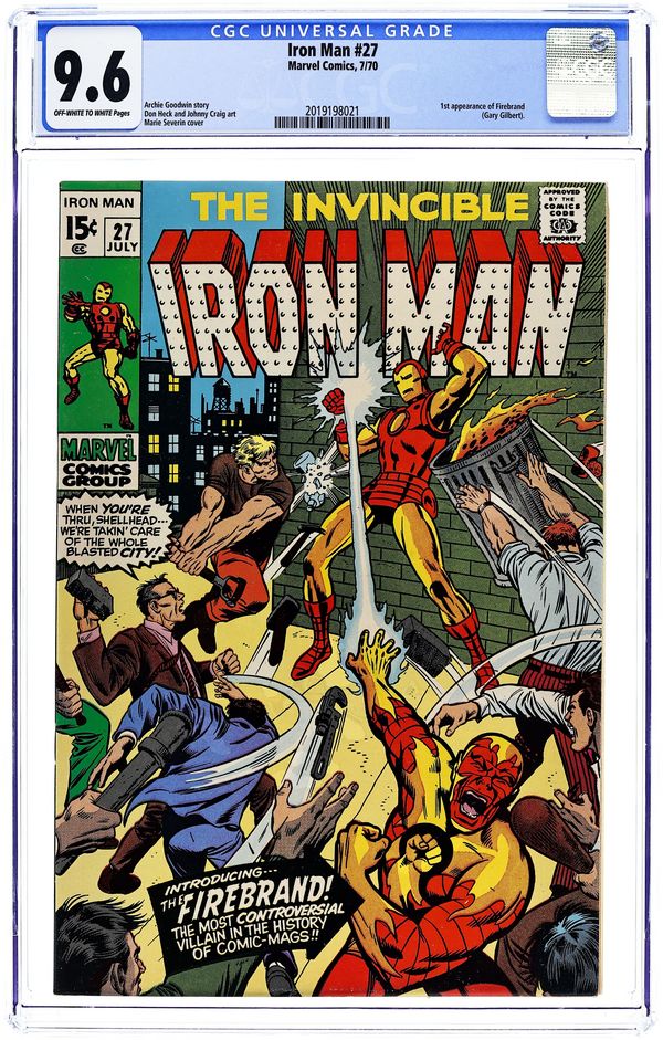 "The Fury of the Firebrand!" Story by Archie Goodwin. Art by Don Heck and Johnny Craig. Cover by Marie Severin and Joe Sinnott. Iron Man and Eddie March attend the ground-breaking ceremony of a new community center in Bay City. However, before the ceremony can begin; a super-powered anarchist stirs up trouble in the racially-divided community, and suddenly a full-scale riot erupts! Can Shell-head restore order to the city and defeat this new foe? First appearance of Firebrand. 32 pages Cover price $0.15.