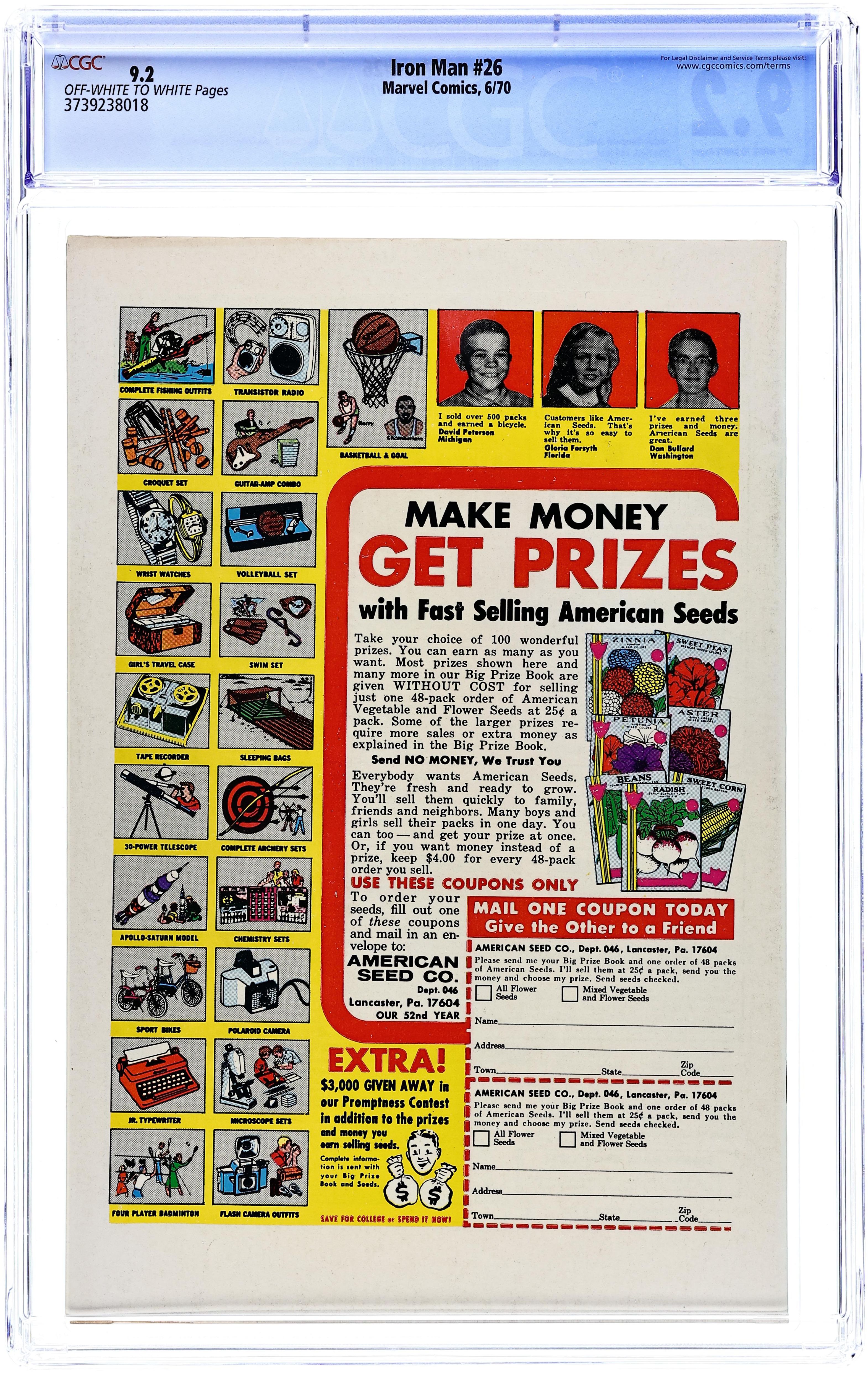 "Beneath the Armor Beats a Heart!" Story by Gary Friedrich. Art by George Tuska and Vince Colletta. Cover by Gil Kane. During Iron Man's triumphant battle over the Night Phantom, Marianne Rodgers reveals to Shell-head that she knows he is Tony Stark. Later that evening Tony proposes to Marianne, and she accepts. Meanwhile, Kevin O'Brien is growing increasingly jealous of Tony's relationship with Marianne, and that leads to the first battle between Iron Man and the Guardsman! Also in this issue, Simon Gilbert wants the Stark Industries board of directors to remove Tony as company president. 32 pages Cover price $0.20.