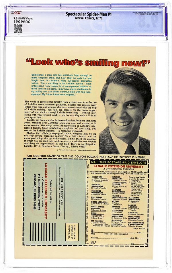 Tags: Marvel Legacy Numbering: Spectacular Spider-Man (part 1), Spider-ManSpectacular Spider-Man (1976 1st Series) 1 CGC 9.8