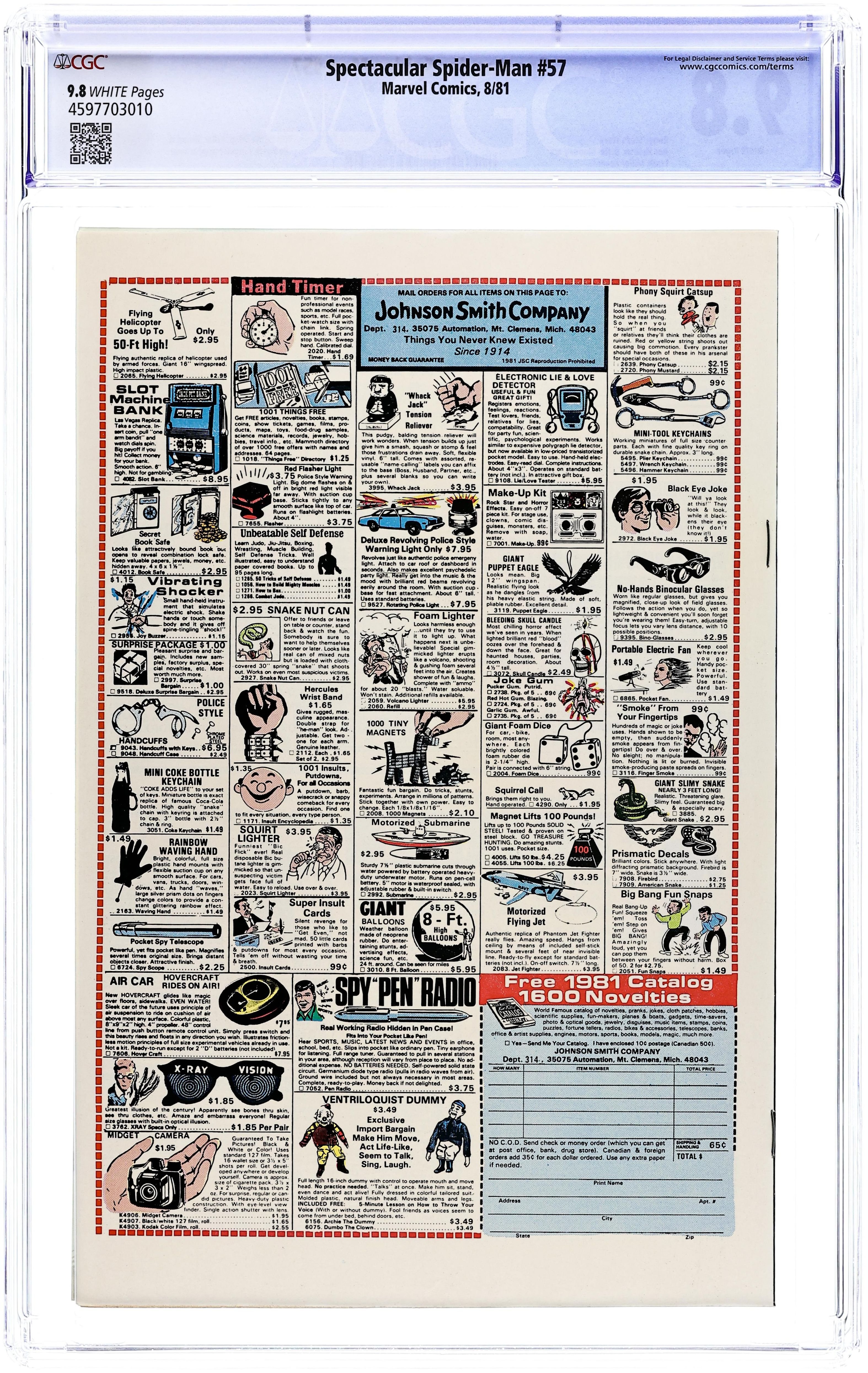 Giant-size issue. The Beetle and the Gibbon guest star in "Beetlemania!" Script by Roger Stern, pencils by Ed Hannigan, inks by Jim Mooney. Spidey's origin retold in "The Birth of a Legend!" Script by Roger Stern, pencils by Greg LaRocque, inks by Bob Wiacek. And check out that incredible Frank Miller cover! Cover price $0.75.