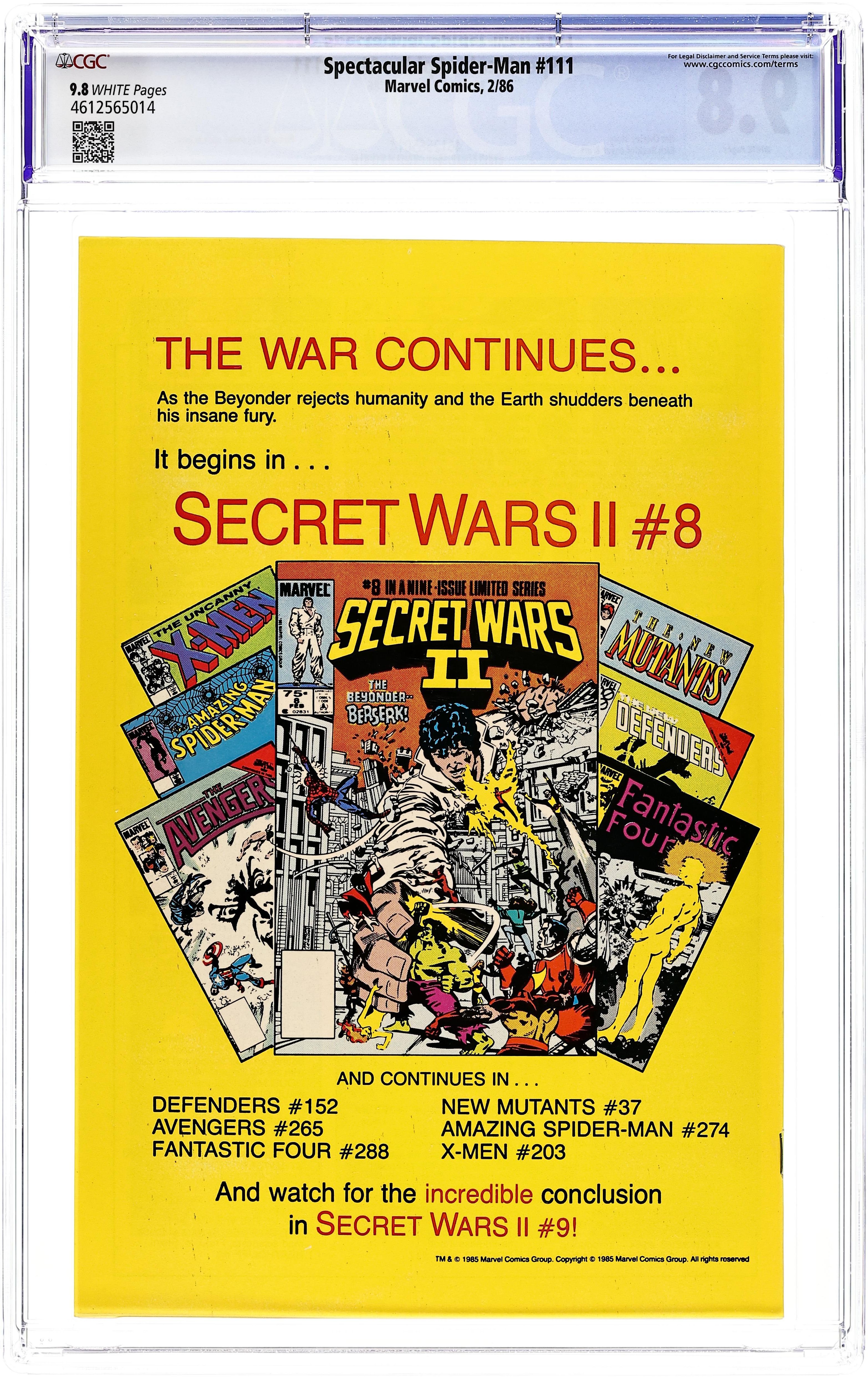 Tags: Marvel Legacy Numbering: Spectacular Spider-Man (part 111), Secret Wars II (part 7.5), Spider-Man$61.75- Paper: White