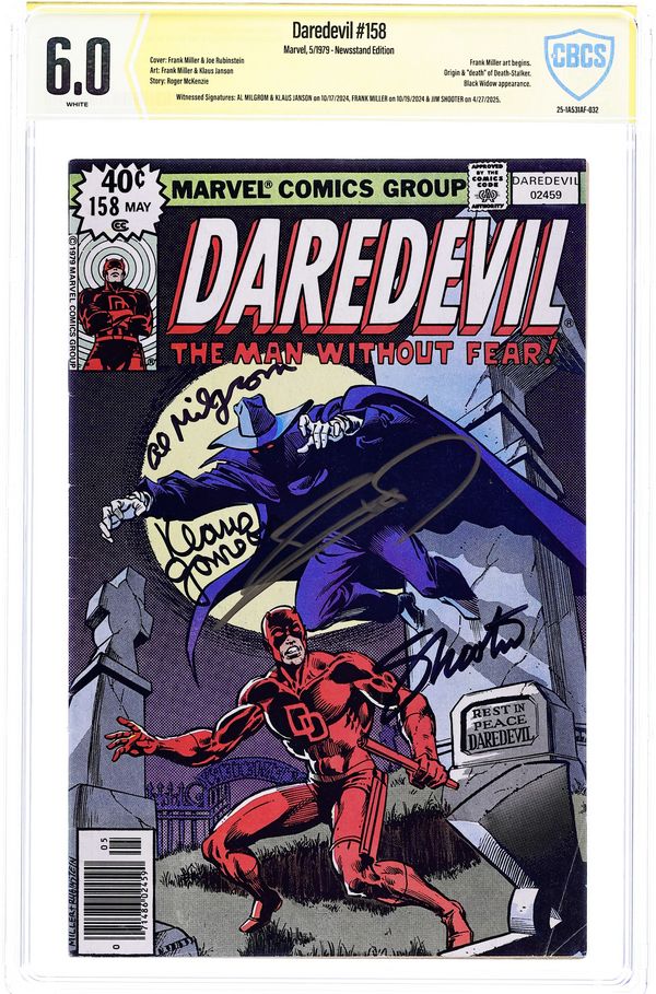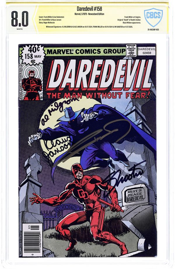 - Newsstand Edition. Witnessed Signatures: Al Milgrom & Klaus Janson on 10/17/2024, Frank Miller on 10/19/2024 & Jim Shooter on 4/27/2025.