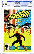 Direct Edition. Cover art by David Mazzucchelli. God and Country starring Daredevil, Karen Page, Foggy Nelson, Glorianna O'Breen, Ben Urich, Kingpin, and Nuke [Sgt. Simpson] (1st), script by Frank Miller, art by David Mazzucchelli; Matt helps Karen kick her drug habit; Kingpin hires a deranged Super Soldier to go after DD; part 6 of critically acclaimed Born Again storyline. 36 pgs. Cover price $0.75. Cover price $0.75.