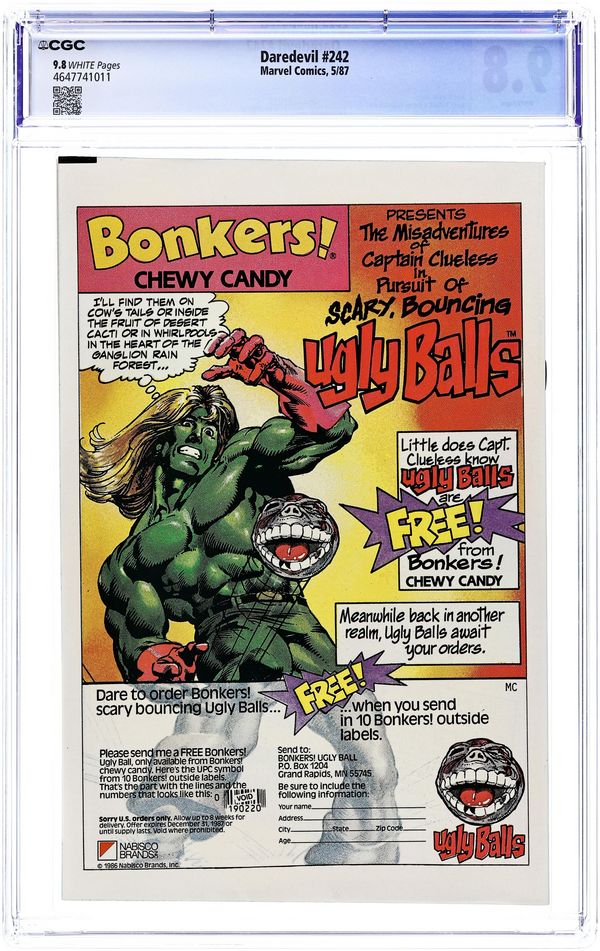 Cover pencils by John Romita, Jr., inks by Al Williamson. The Bully, script by Ann Nocenti, pencils by John Romita, Jr., inks by Al Williamson; Daredevil tracks down the killer putting cyanide in aspirin but ends up having to save him from Punisher's brand of justice; Crossover with Punisher #10; Both issues tell the same story from two different perspectives. Letter to the editor from Charles Novinskie (Topps Comics). 32 pgs. Cover price $0.75. Cover price $0.75.
